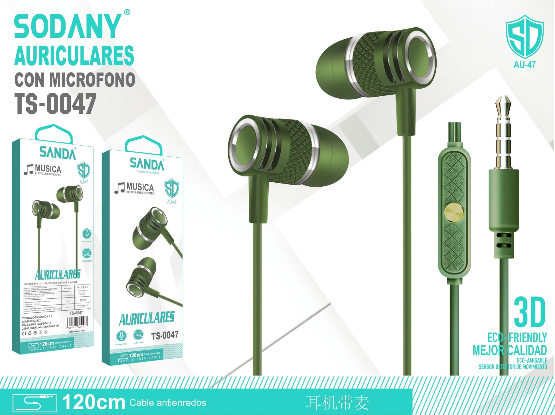 In-ear headphones with built-in microphone, available in a variety of colors (black, blue, green and white). Designed to offer excellent sound quality and comfort, ideal for calls and listening to music.