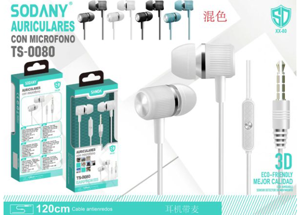 In-ear headphones with built-in microphone, available in a variety of colors (black, white, red, blue and silver). Designed to offer excellent sound quality and comfort, ideal for calls and listening to music.