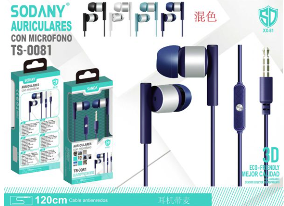 In-ear headphones with built-in microphone, available in a variety of colors (black, white, red, blue and silver). Designed to offer excellent sound quality and comfort, ideal for calls and listening to music.