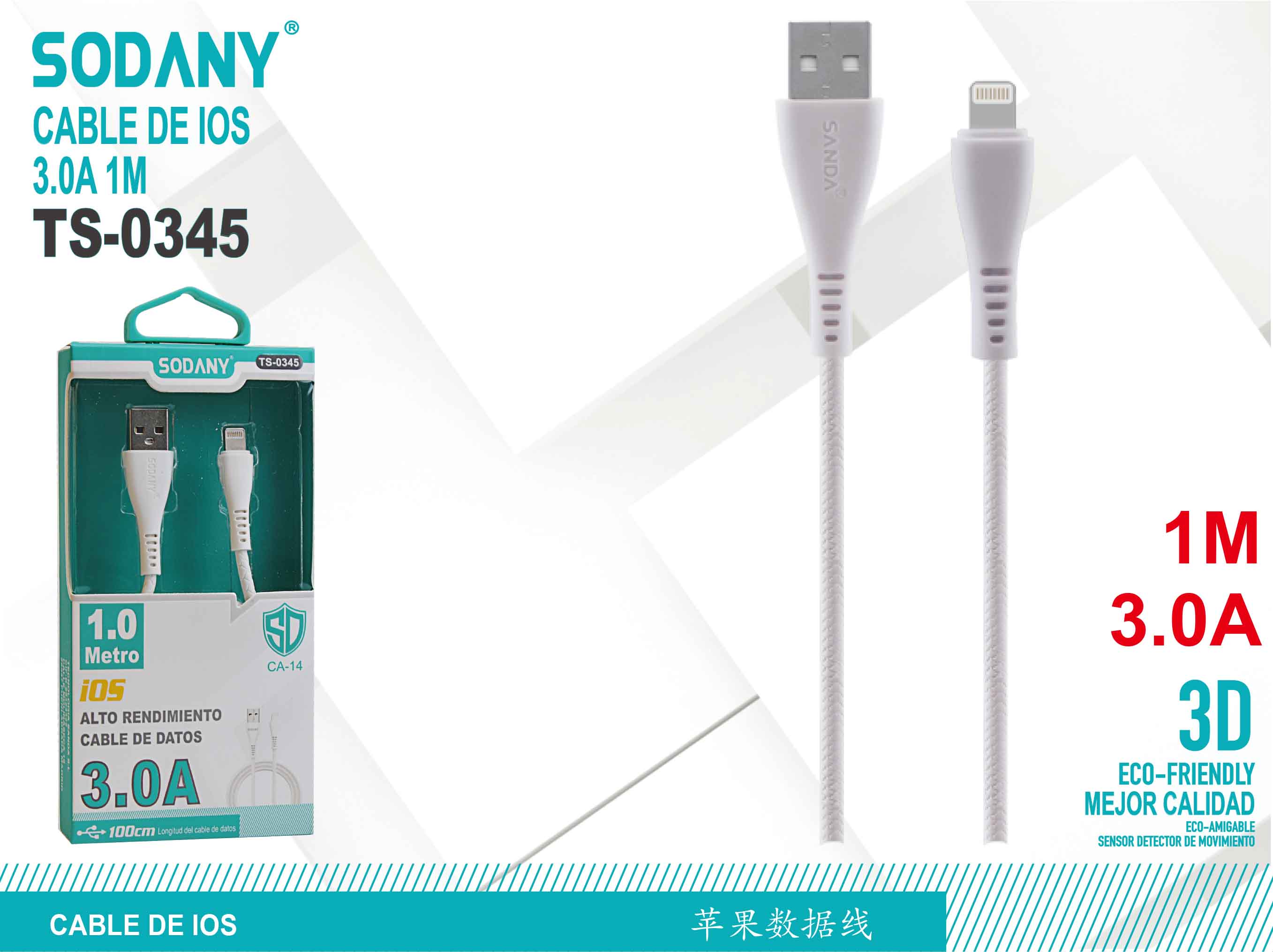 100cm long USB to iOS cable, designed to provide fast and efficient charging. This charging cable supports a current of up to 3.0A, ensuring fast and safe charging for your compatible devices. Ideal for iPhones, iPads and other devices with iOS port.