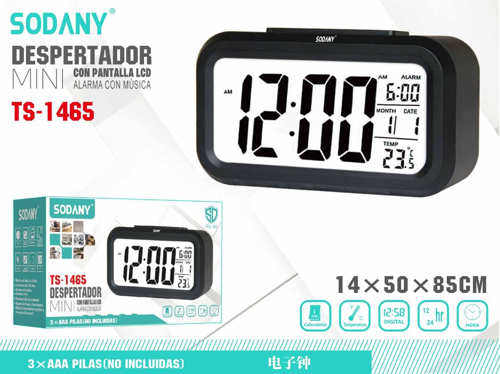The Sodany TS-1465 is a modern digital alarm clock with a large, clear LCD display, designed to offer convenience and functionality in your daily routine.