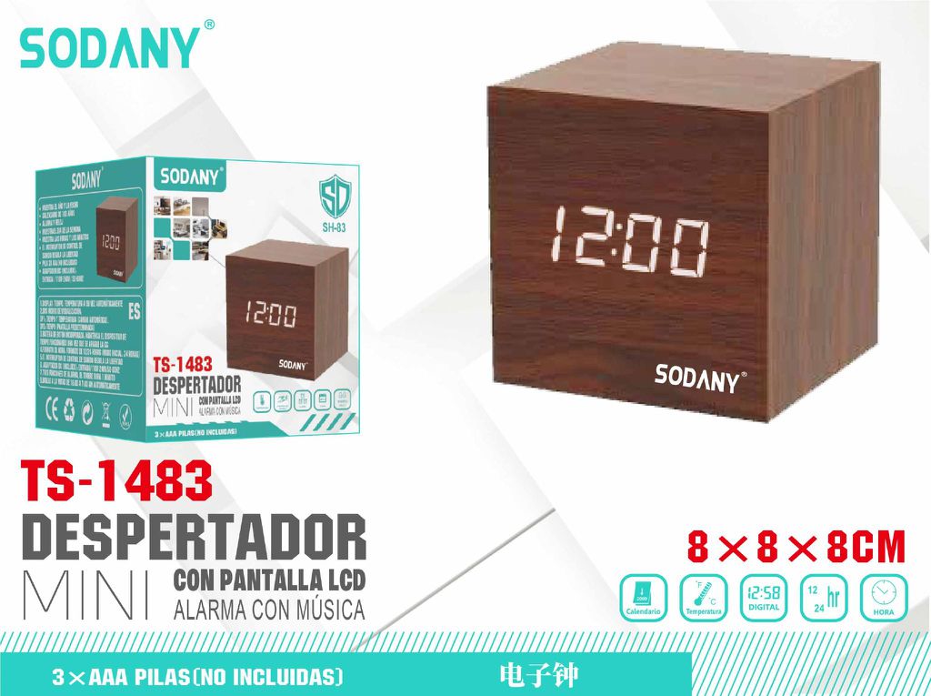 The Sodany TS-1483 alarm clock is a cube-shaped digital clock with an elegant dark wood finish. This device not only provides accurate time, but also serves as a decorative element that fits into any space, whether at home or in the office.