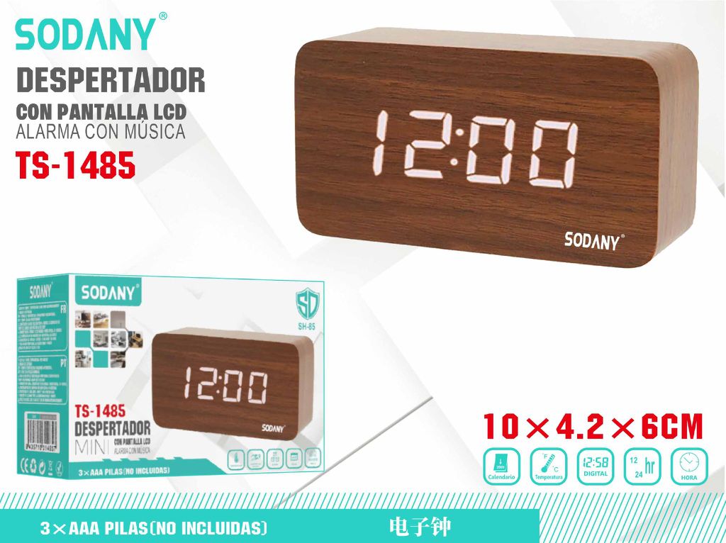 The Sodany TS-1485 is a digital alarm clock with an elegant dark wood finish, ideal for any space looking for a modern and natural style. This alarm clock not only stands out for its aesthetics, but also for its functional features that facilitate a pleasant awakening.