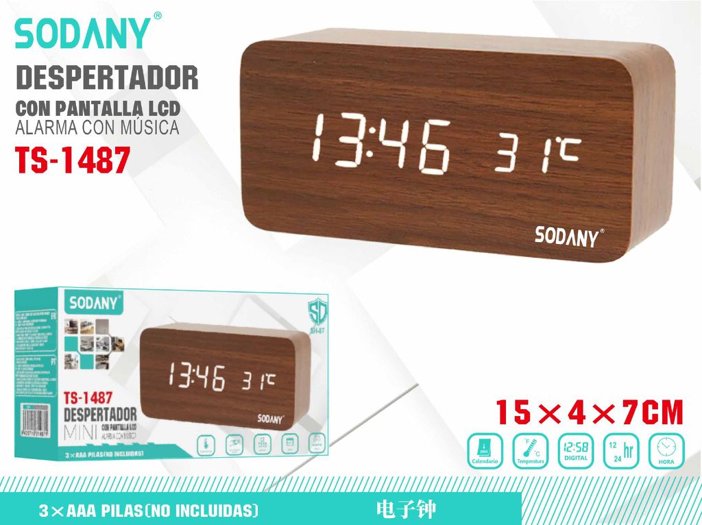 The Sodany TS-1487 is a stylish digital alarm clock made of dark wood, designed to combine classic style with modern functions. Its minimalist design makes it an ideal addition to any space, whether at home or in the office.