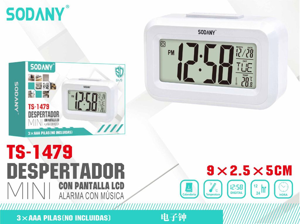 The Sodany TS-1479 is a compact electronic alarm clock with a clear LCD display and essential functions, ideal for any bedside table or desk.
