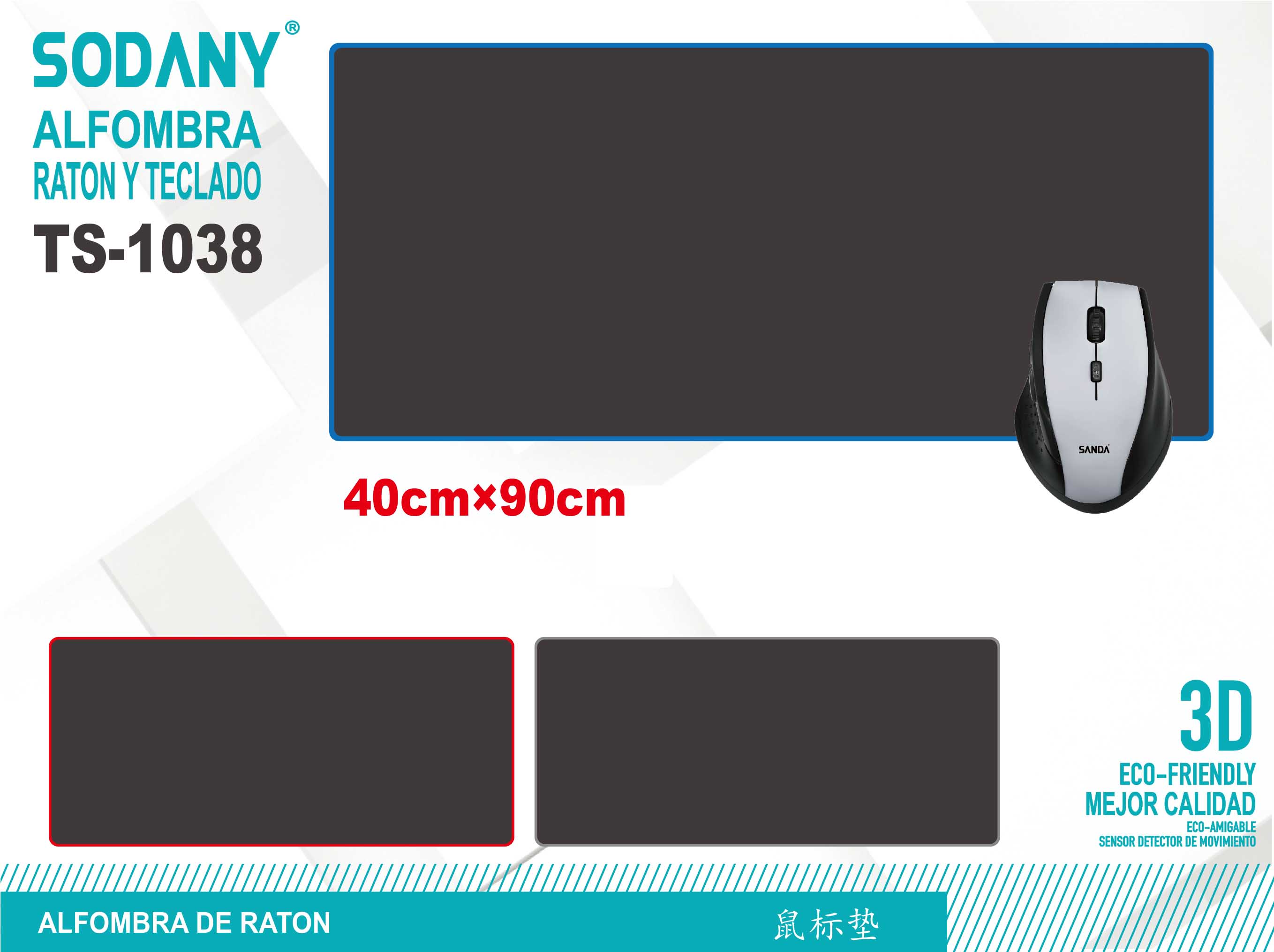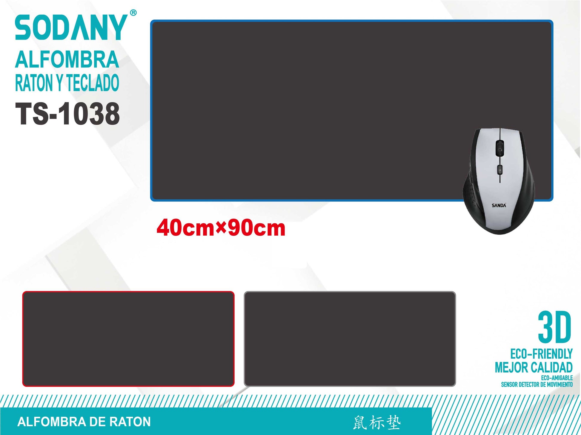 La Alfombra de Ratón Sodany TS-1038 es ideal para quienes buscan un complemento práctico y elegante para su espacio de trabajo o gaming. Con un diseño sencillo en color negro y dimensiones amplias de 40 cm x 90 cm, ofrece una superficie cómoda para el uso del ratón y teclado.