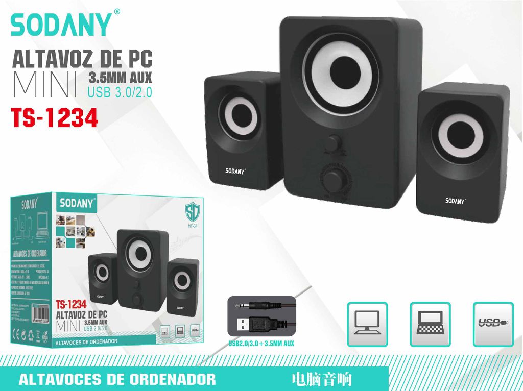 Los altavoces de computadora Sodany TS-1234 son un sistema de sonido compacto que ofrece una excelente calidad de audio en un diseño moderno. Con un subwoofer integrado y dos altavoces satélite, estos altavoces son ideales para mejorar la experiencia de audio en tu computadora, ya sea para escuchar música, ver videos o jugar.
