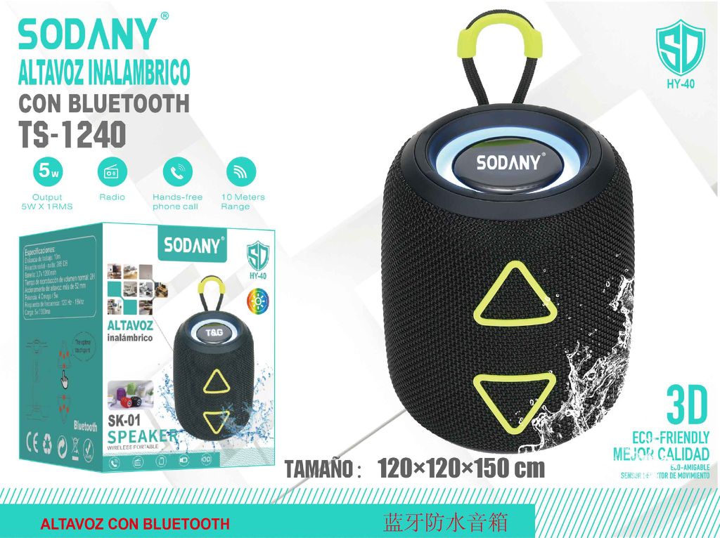 El Sodany TS-1240 es un altavoz inalámbrico Bluetooth diseñado para ofrecer un sonido potente y de alta calidad en cualquier entorno. Con su diseño moderno y resistente al agua, es perfecto para exteriores y actividades al aire libre.
