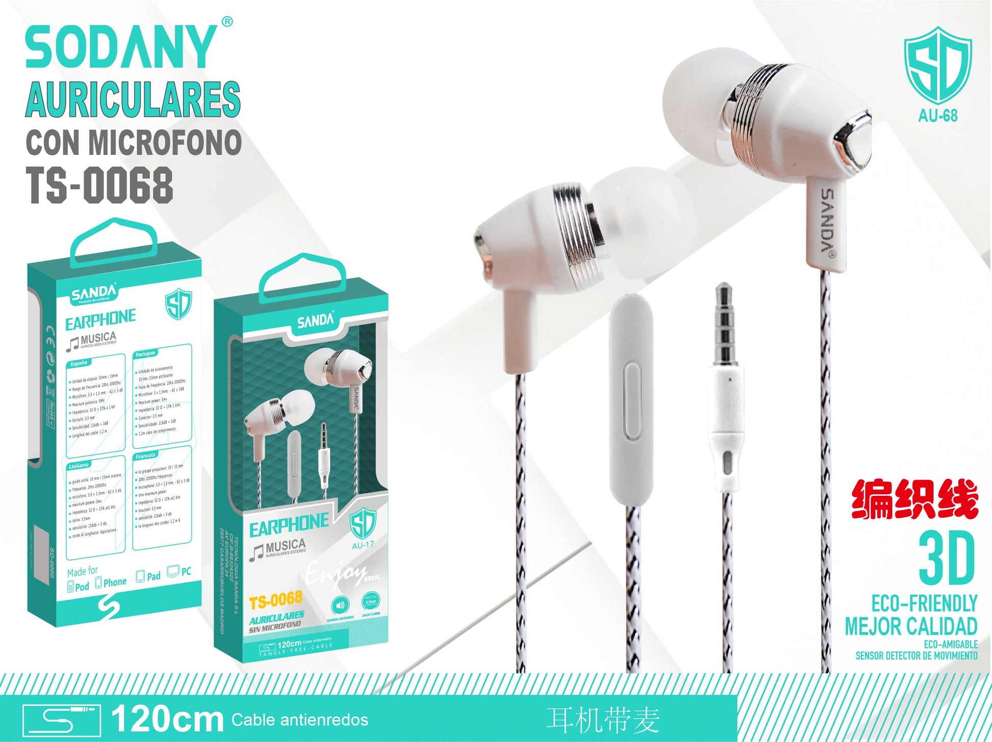 Auriculares in-ear con micrófono integrado y conexión de 3.5 mm, diseñados para proporcionar un sonido claro y detallado. Perfectos para llamadas, música y uso diario. Disponibles en un elegante color blanco con cable trenzado que asegura una mayor durabilidad y evita enredos.