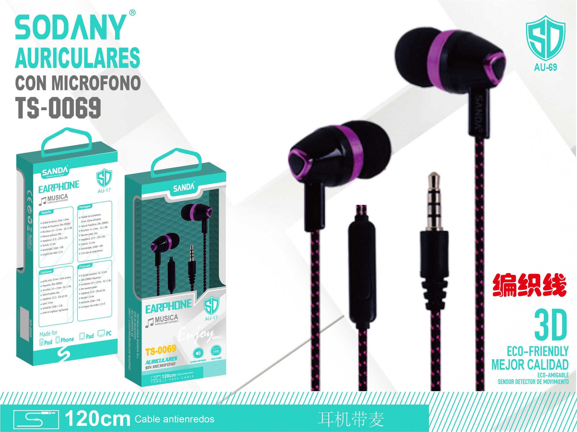 Auriculares in-ear con micrófono integrado y conexión de 3.5 mm, diseñados para ofrecer una calidad de sonido superior y durabilidad. Ideales para llamadas y reproducción de música, con un atractivo diseño en color negro con detalles en rosa y cable trenzado para evitar enredos.