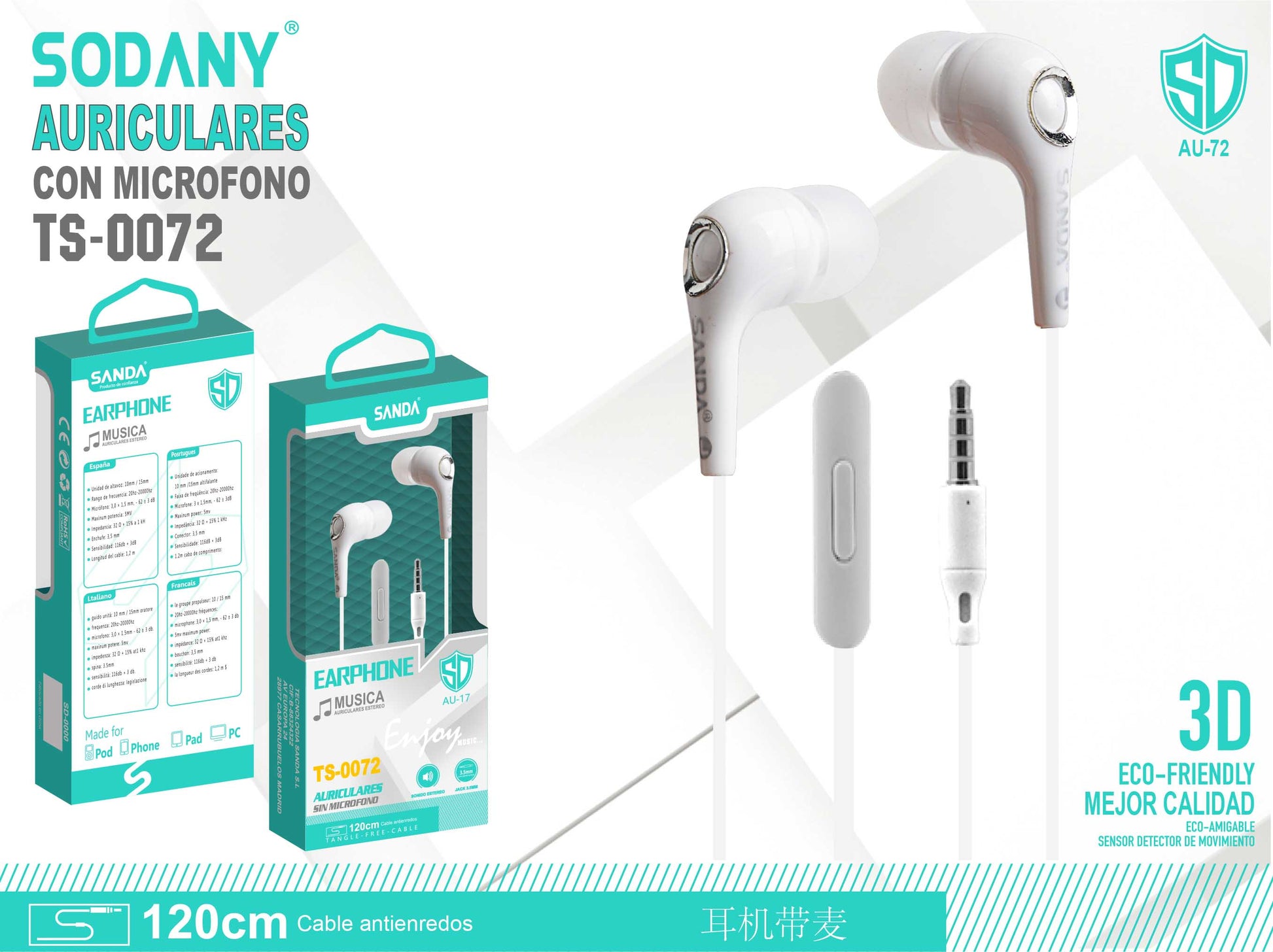 Auriculares in-ear con micrófono integrado y conexión de 3.5 mm, diseñados para ofrecer una calidad de sonido superior y durabilidad. Ideales para llamadas y reproducción de música, con un elegante diseño en color blanco y cable trenzado para evitar enredos.