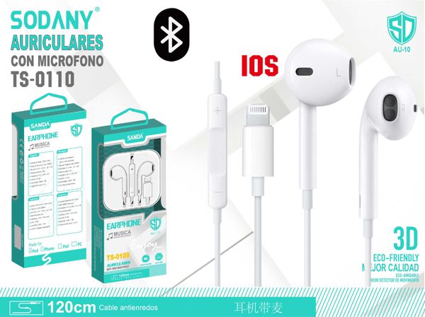 Auriculares intrauditivos con micrófono integrado y conexión Lightning, especialmente diseñados para dispositivos iOS. Ofrecen una experiencia de audio superior y son ideales para realizar llamadas y escuchar música con alta calidad.