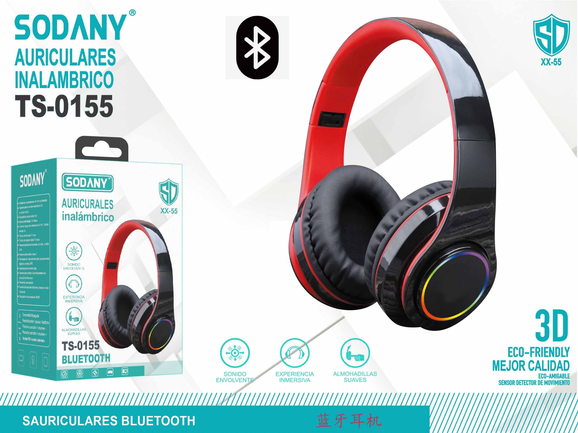 Auriculares diadema inalámbricos Bluetooth diseñados para ofrecer una experiencia auditiva envolvente con una estética moderna en colores negro y rojo. Estos auriculares están equipados con tecnología avanzada para proporcionar un sonido nítido y de alta calidad, ideal para disfrutar de música y llamadas.