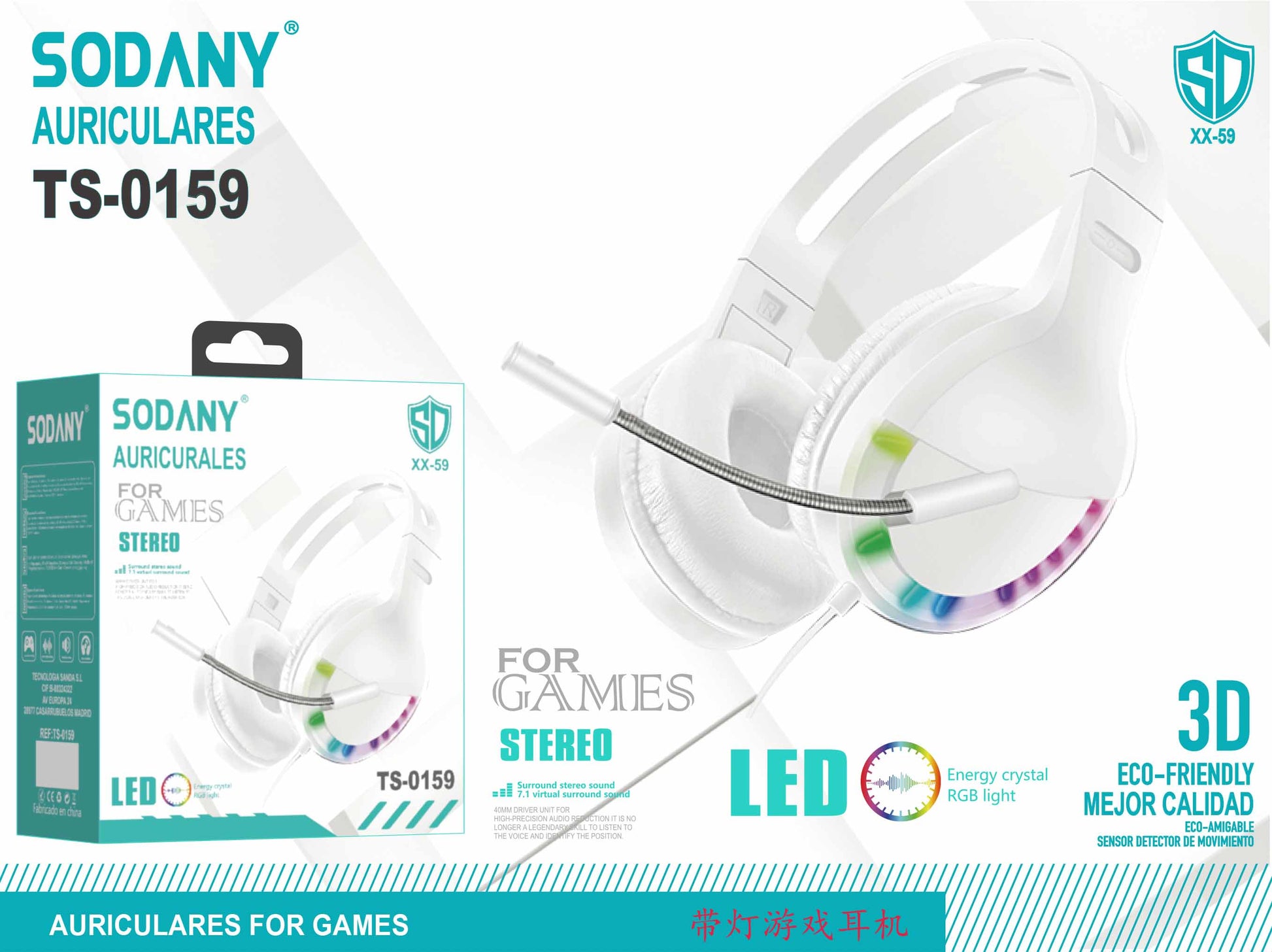 Auriculares diadema con cable diseñados para ofrecer una experiencia auditiva inmersiva con una estética moderna en color blanco. Equipados con luces LED RGB, estos auriculares son ideales para jugadores que buscan calidad de sonido y estilo.