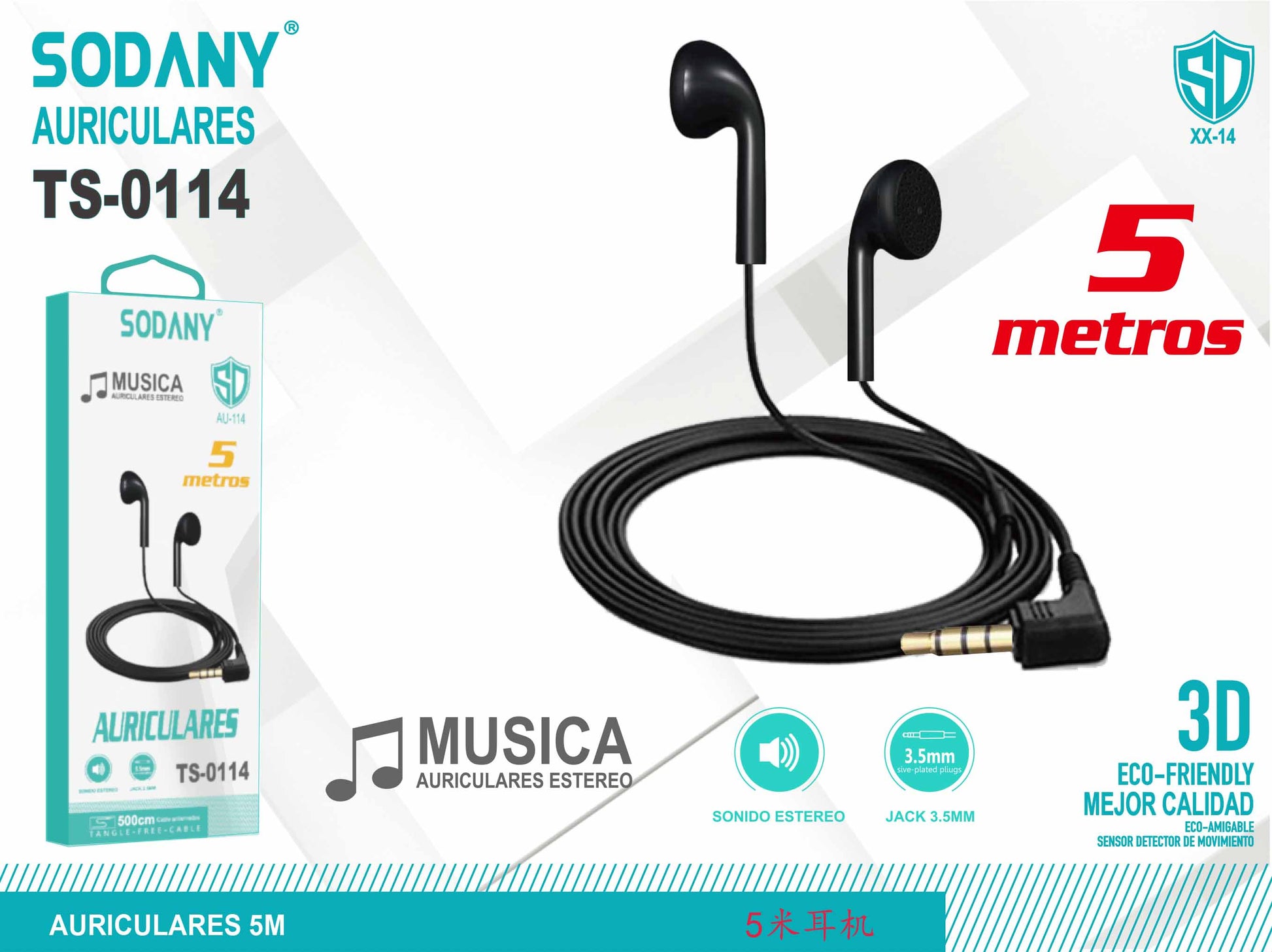 Auriculares intrauditivos con cable de 5 metros diseñados para ofrecer una experiencia auditiva de alta calidad. Perfectos para escuchar música con claridad y detalle, estos auriculares cuentan con un diseño elegante y funcional.