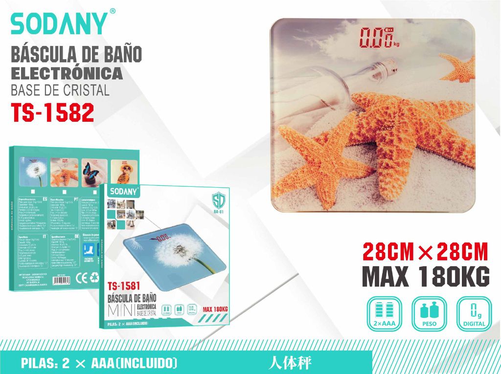 La báscula de baño electrónica Sodany TS-1582 es una combinación perfecta de precisión y diseño decorativo. Con una base de cristal adornada con una imagen de estrellas de mar, esta báscula no solo mide con precisión hasta 180kg, sino que también aporta un toque de elegancia costera a su baño. Su tamaño de 28cm x 28cm ofrece una superficie segura y estable, mientras que la pantalla digital LED garantiza lecturas claras y precisas.