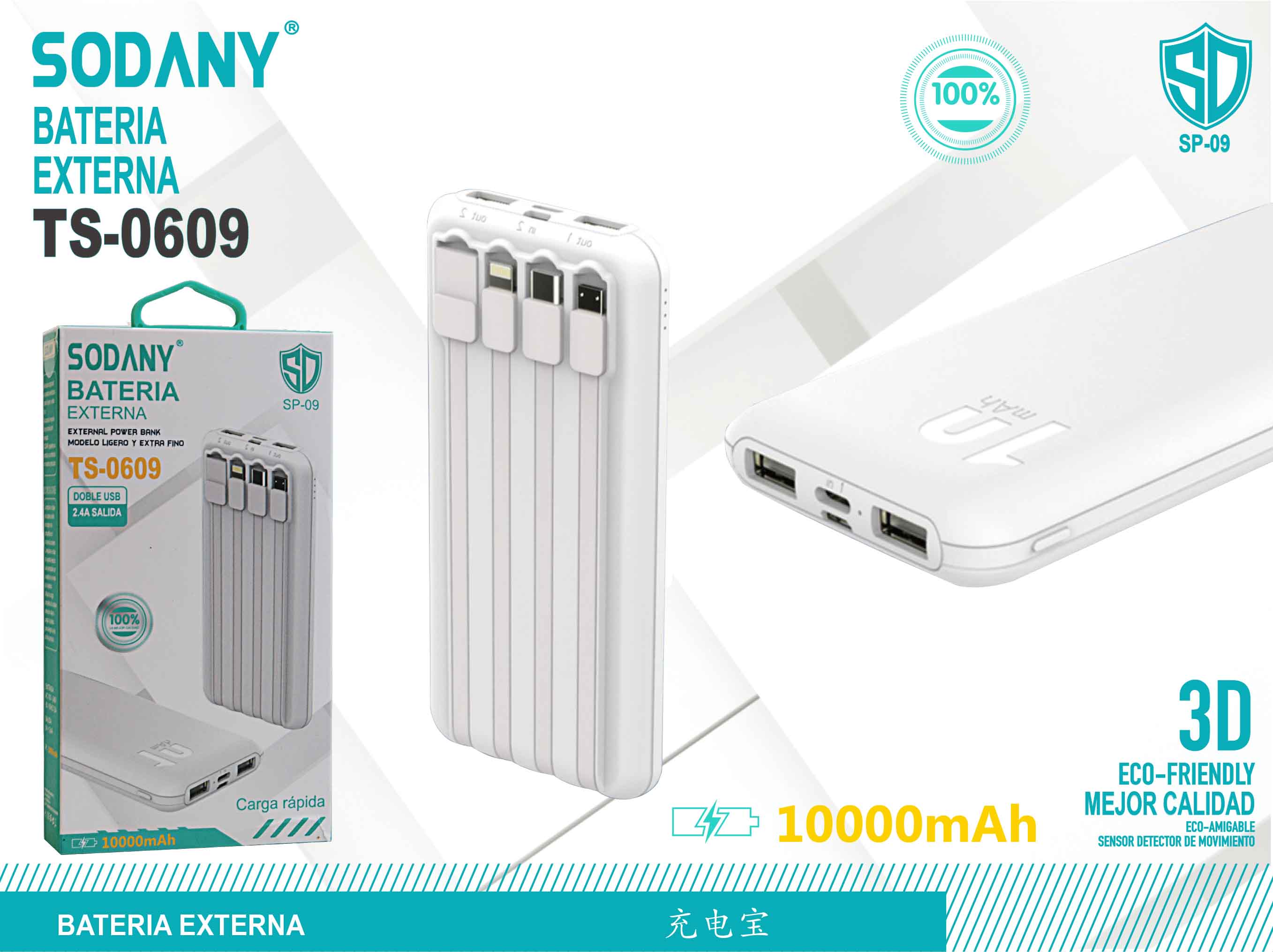 La Batería Externa Sodany TS-0609 es una herramienta esencial para mantener tus dispositivos cargados mientras te desplazas. Con una capacidad de 10000mAh y un diseño delgado, esta batería ofrece una solución eficiente y práctica para tus necesidades de carga diaria.