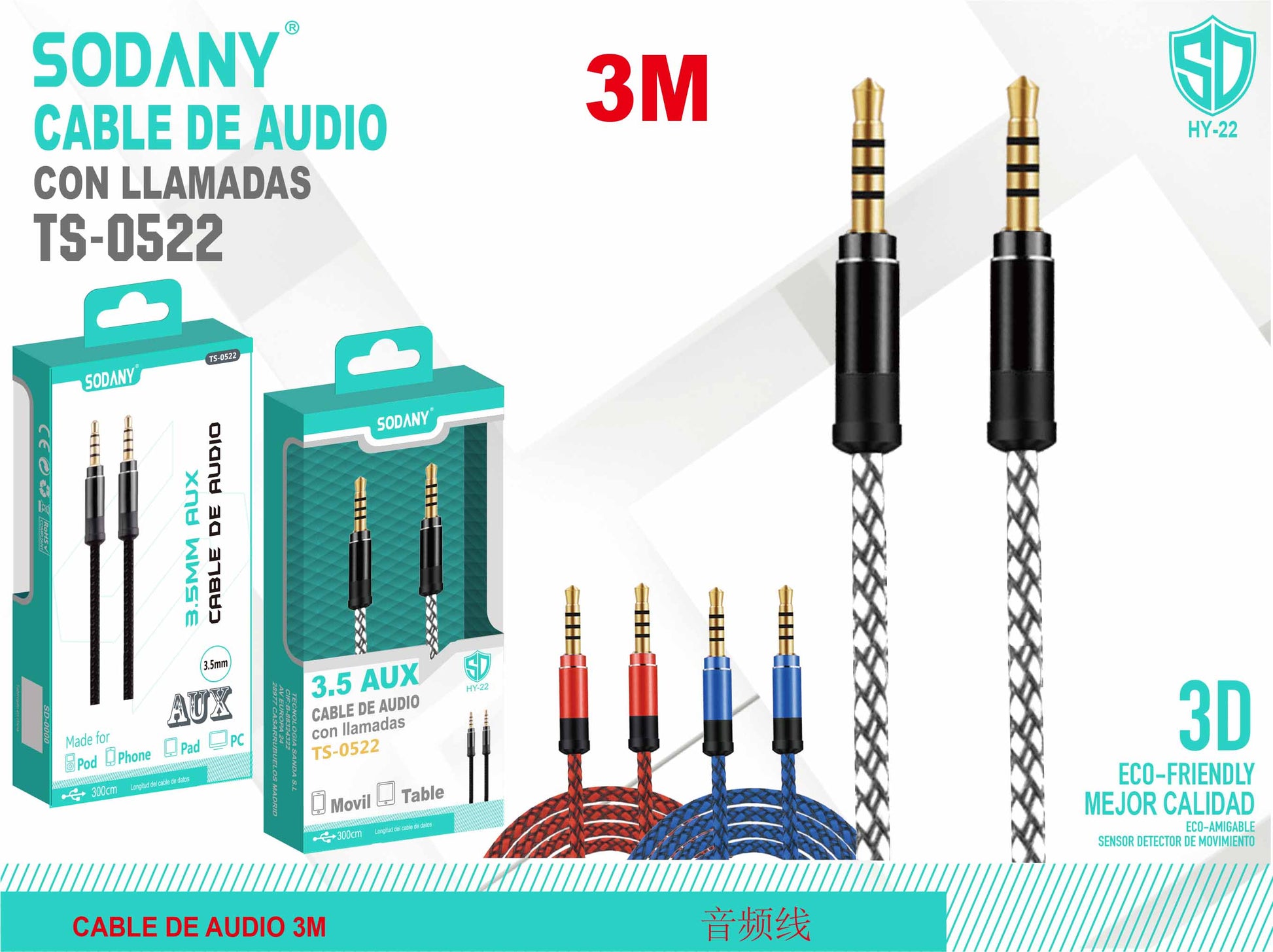 Cable de Audio 3M con Llamadas - Sodany TS-0522