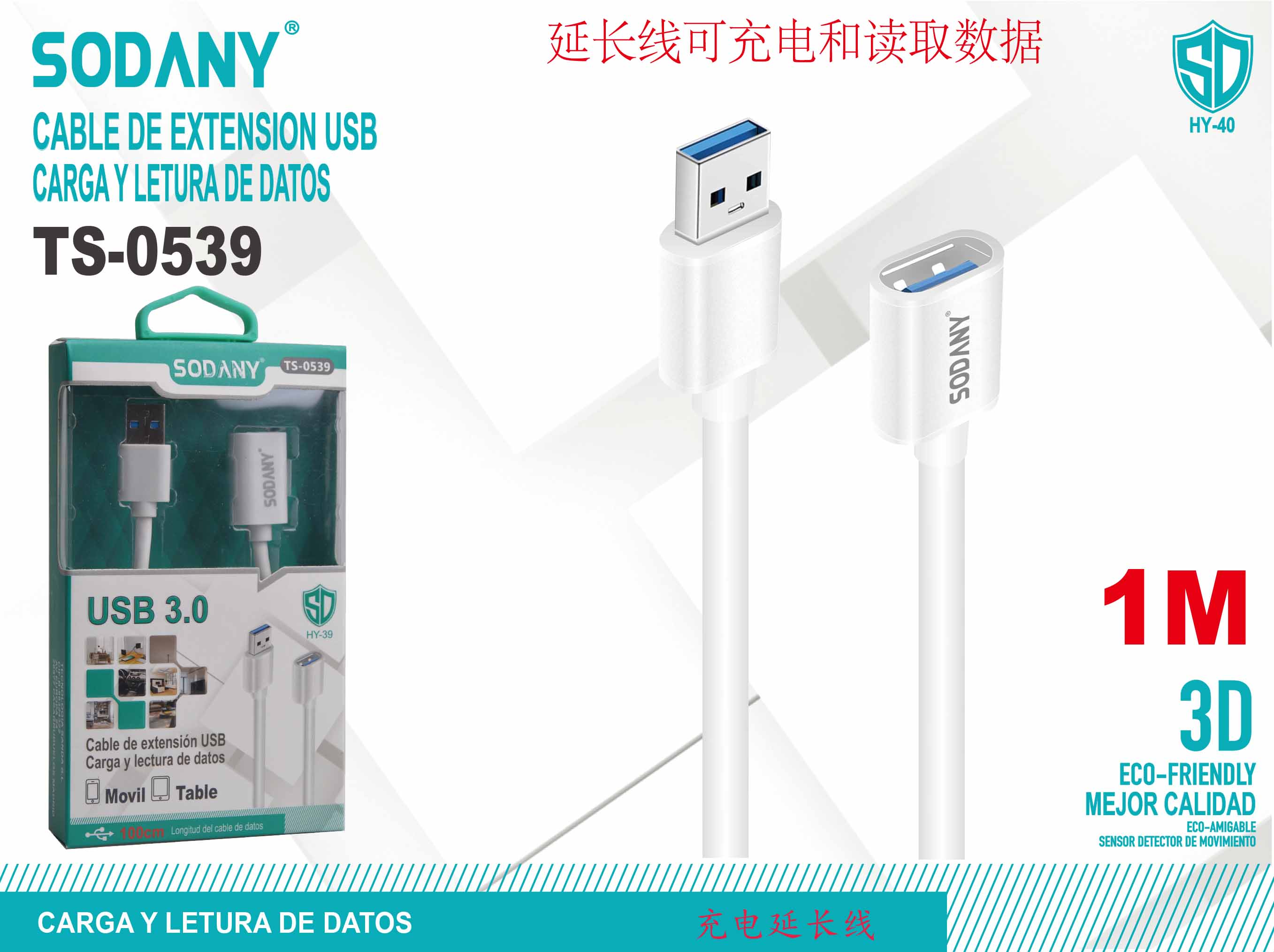 El cable de extensión USB 3.0 de Sodany, modelo TS-0539, es un accesorio esencial para extender la conectividad de tus dispositivos. Con una longitud de 1 metro, este cable permite cargar y transferir datos de manera eficiente, ofreciendo una solución práctica para el uso diario.