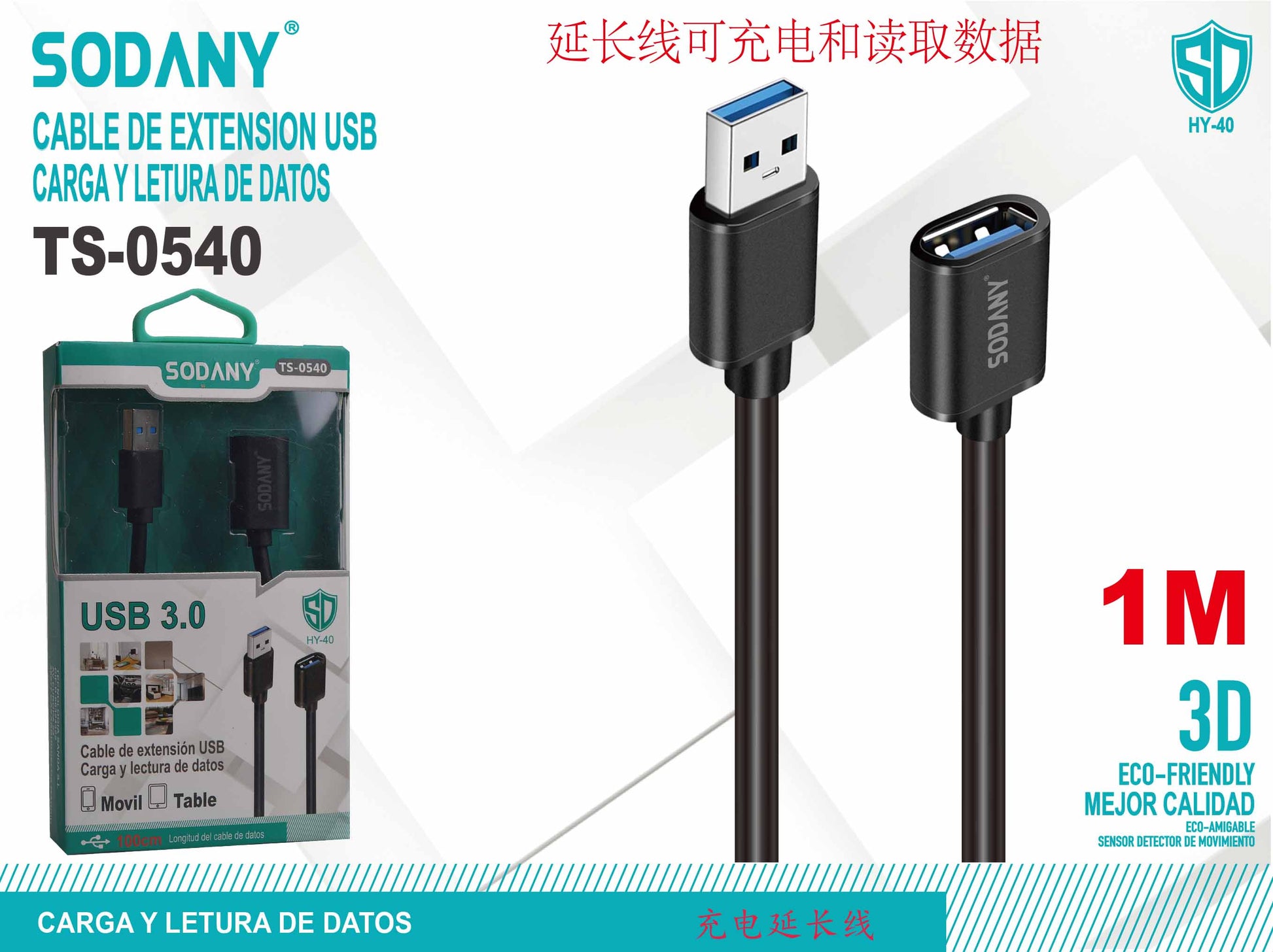 Cable de Extensión USB 1M - Sodany TS-0540
