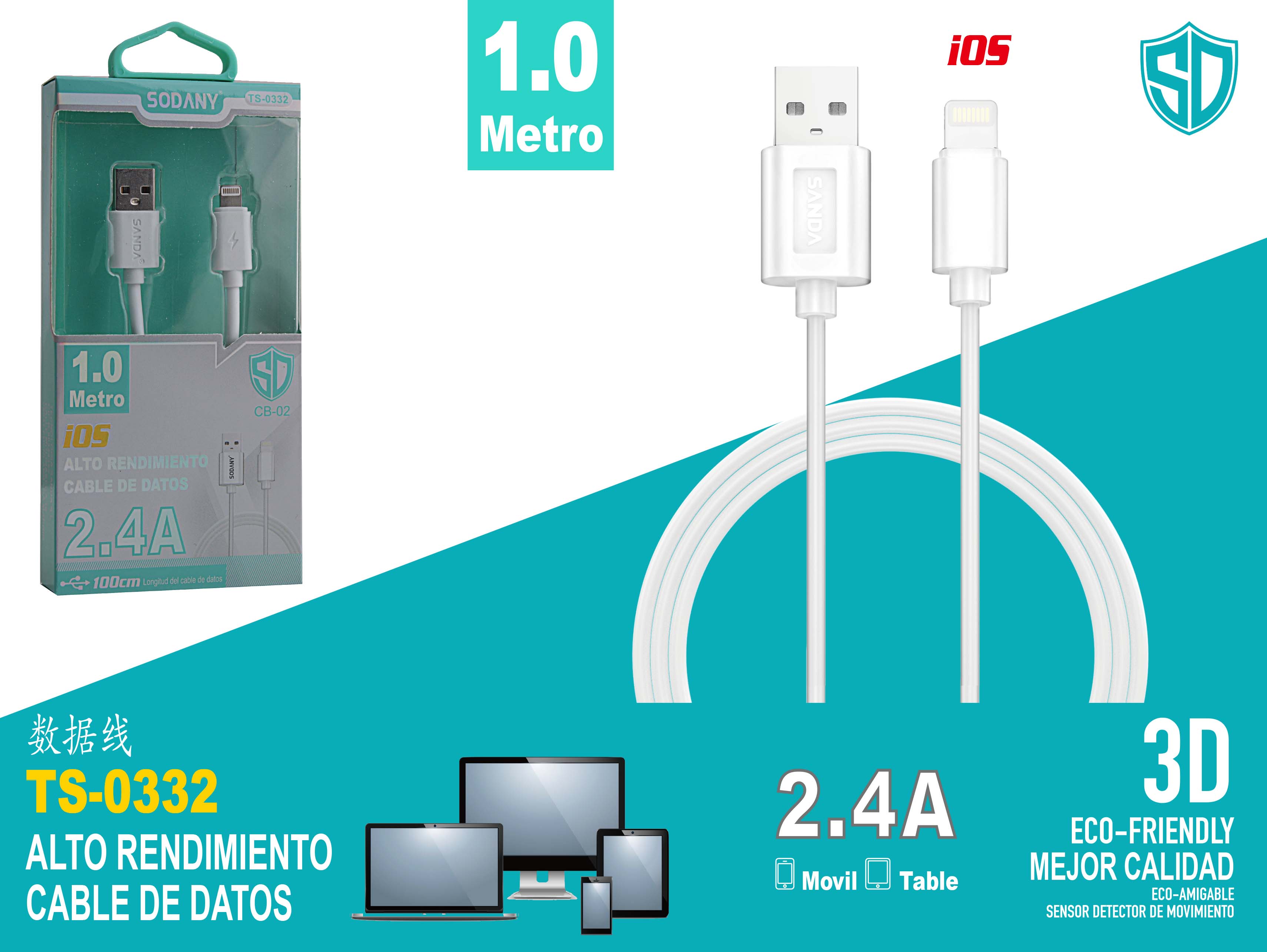 - Tipo de Conector: USB a iOS