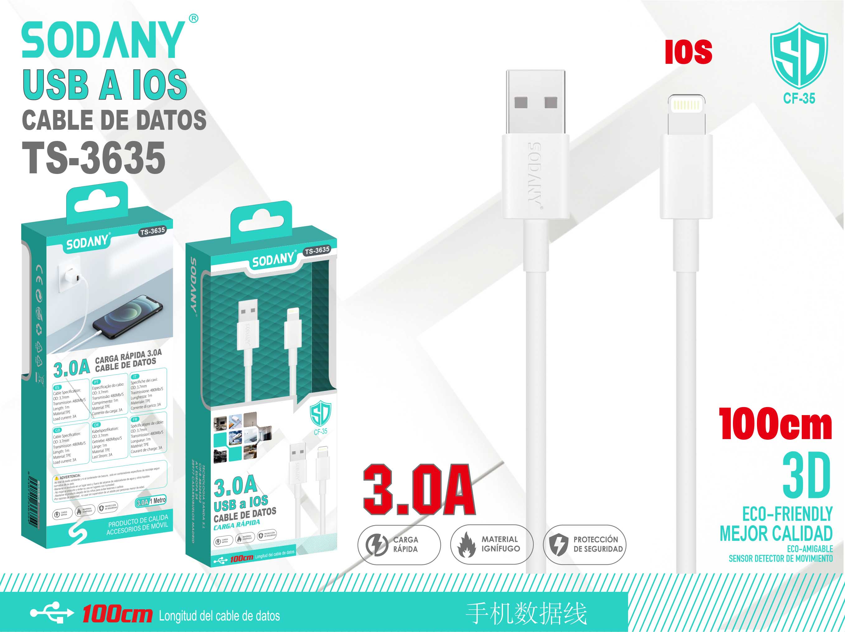 Cable USB a iOS de 100 cm de longitud, diseñado para proporcionar una carga rápida y eficiente. Este cable de carga soporta una corriente de hasta 3.0A, asegurando una carga rápida y segura para tus dispositivos compatibles. Ideal para iPhones, iPads y otros dispositivos con puerto iOS.
