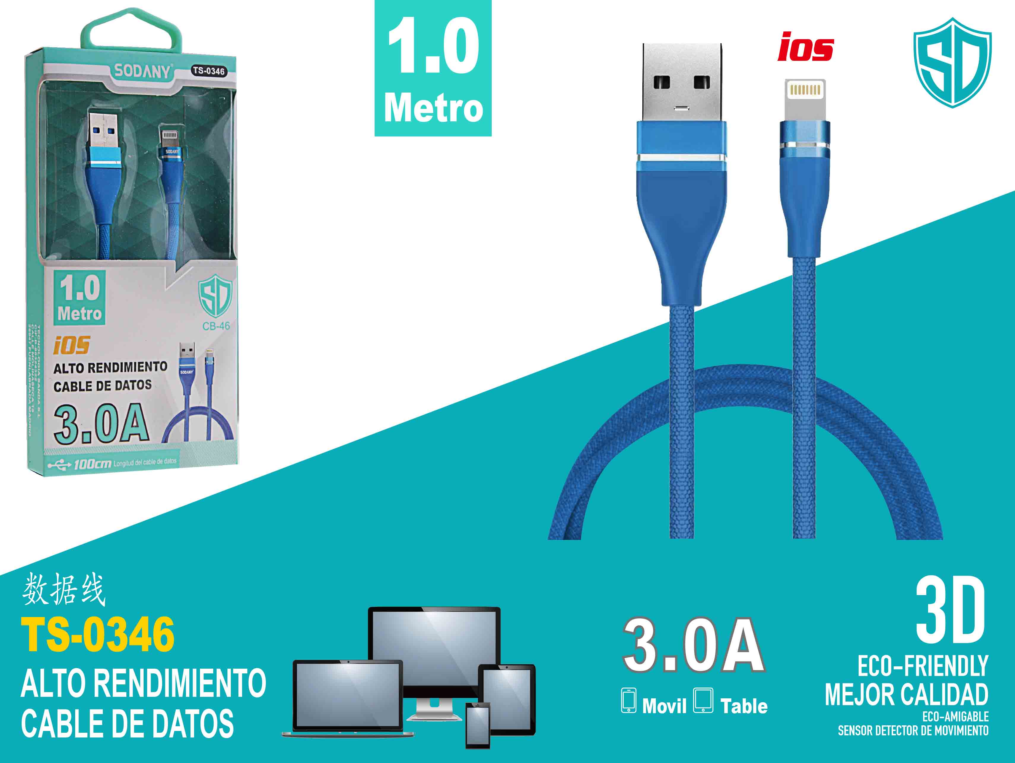 Cable USB a iOS de 100 cm de longitud, diseñado para proporcionar una carga rápida y eficiente. Este cable de carga soporta una corriente de hasta 3.0A, asegurando una carga rápida y segura para tus dispositivos compatibles. Ideal para iPhones, iPads y otros dispositivos con puerto iOS.
