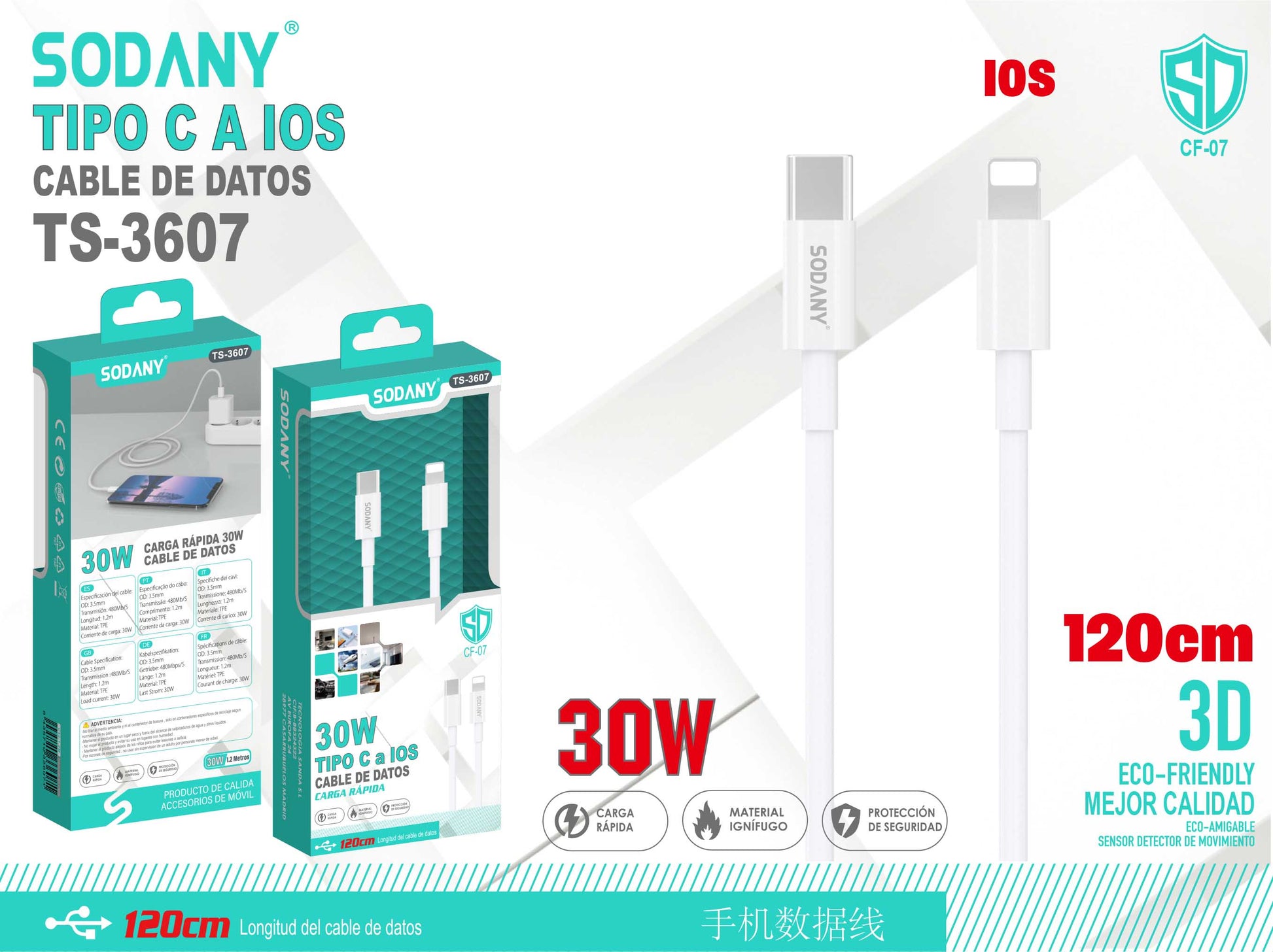 Cable Tipo C a iOS de 120 cm de longitud, diseñado para proporcionar una carga rápida y eficiente. Este cable de carga admite una potencia máxima de 30W, asegurando una carga rápida y segura para tus dispositivos compatibles. Ideal para iPhones, iPads y otros dispositivos con puerto iOS.