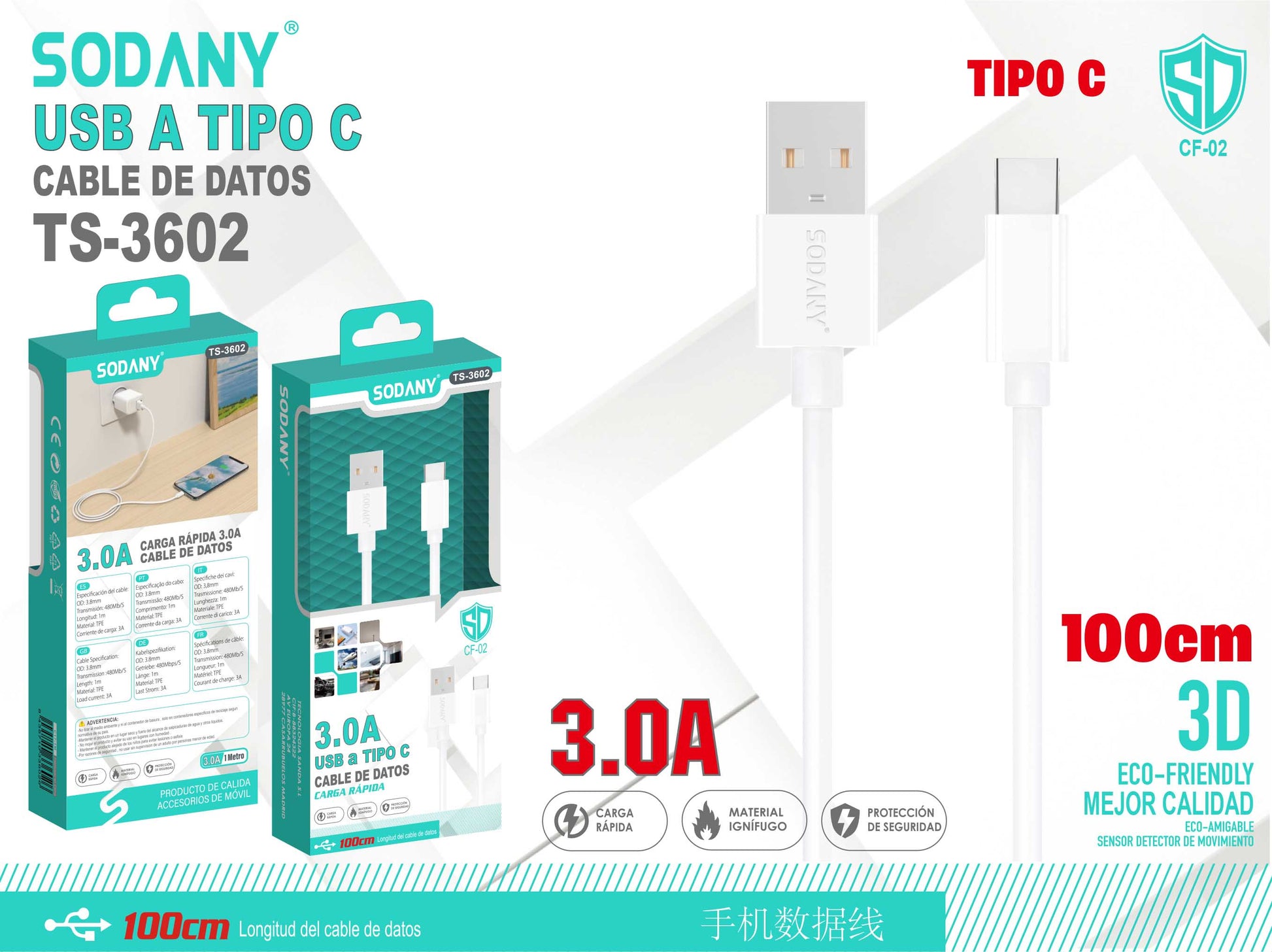 Cable USB a Tipo C de 100 cm de longitud, diseñado para proporcionar una carga rápida y eficiente. Este cable de carga soporta una corriente de hasta 3.0A, asegurando una carga rápida y segura para tus dispositivos compatibles. Ideal para smartphones, tablets y otros dispositivos con puerto Tipo C.