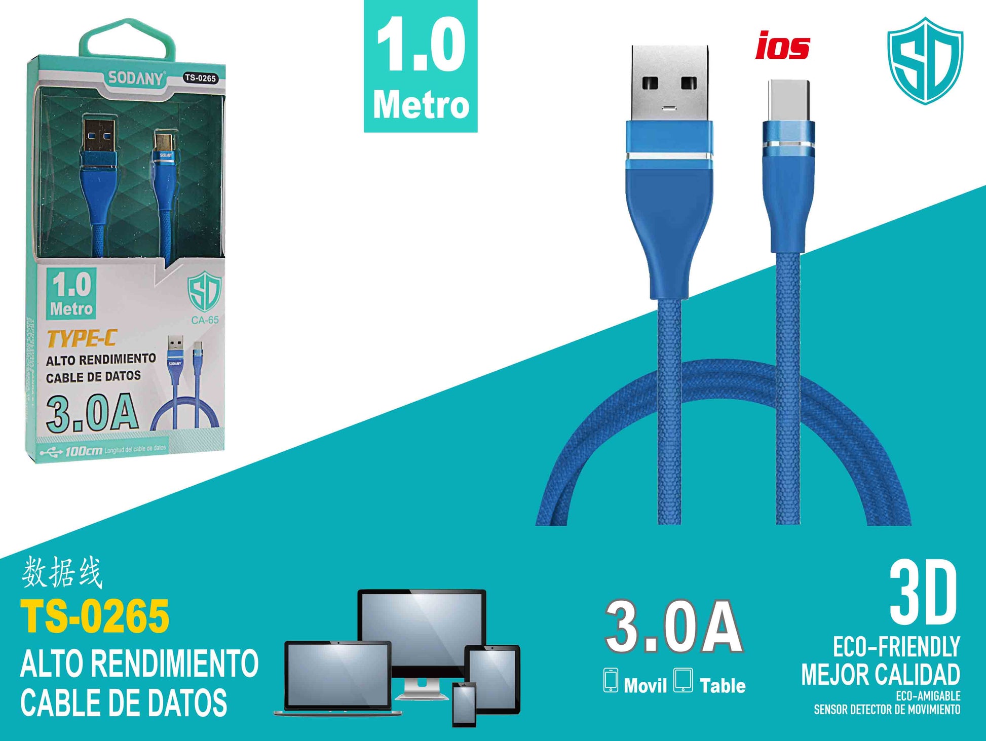 Cable USB a Tipo C de 100 cm de longitud, diseñado para proporcionar una carga rápida y eficiente. Este cable de carga soporta una corriente de hasta 3.0A, asegurando una carga rápida y segura para tus dispositivos compatibles. Ideal para smartphones, tablets y otros dispositivos con puerto Tipo C.