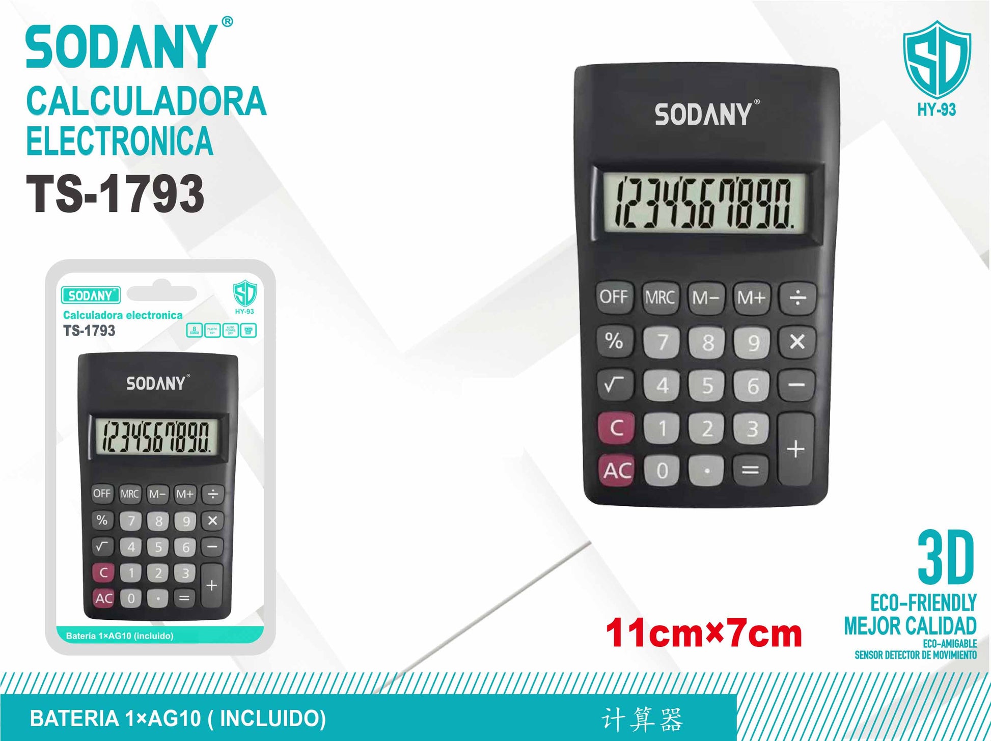 La calculadora electrónica Sodany TS-1793 es una opción compacta y eficiente para realizar cálculos básicos. Diseñada para usuarios que buscan funcionalidad y portabilidad, esta calculadora es ideal para su uso diario en el hogar, la oficina o en la escuela.