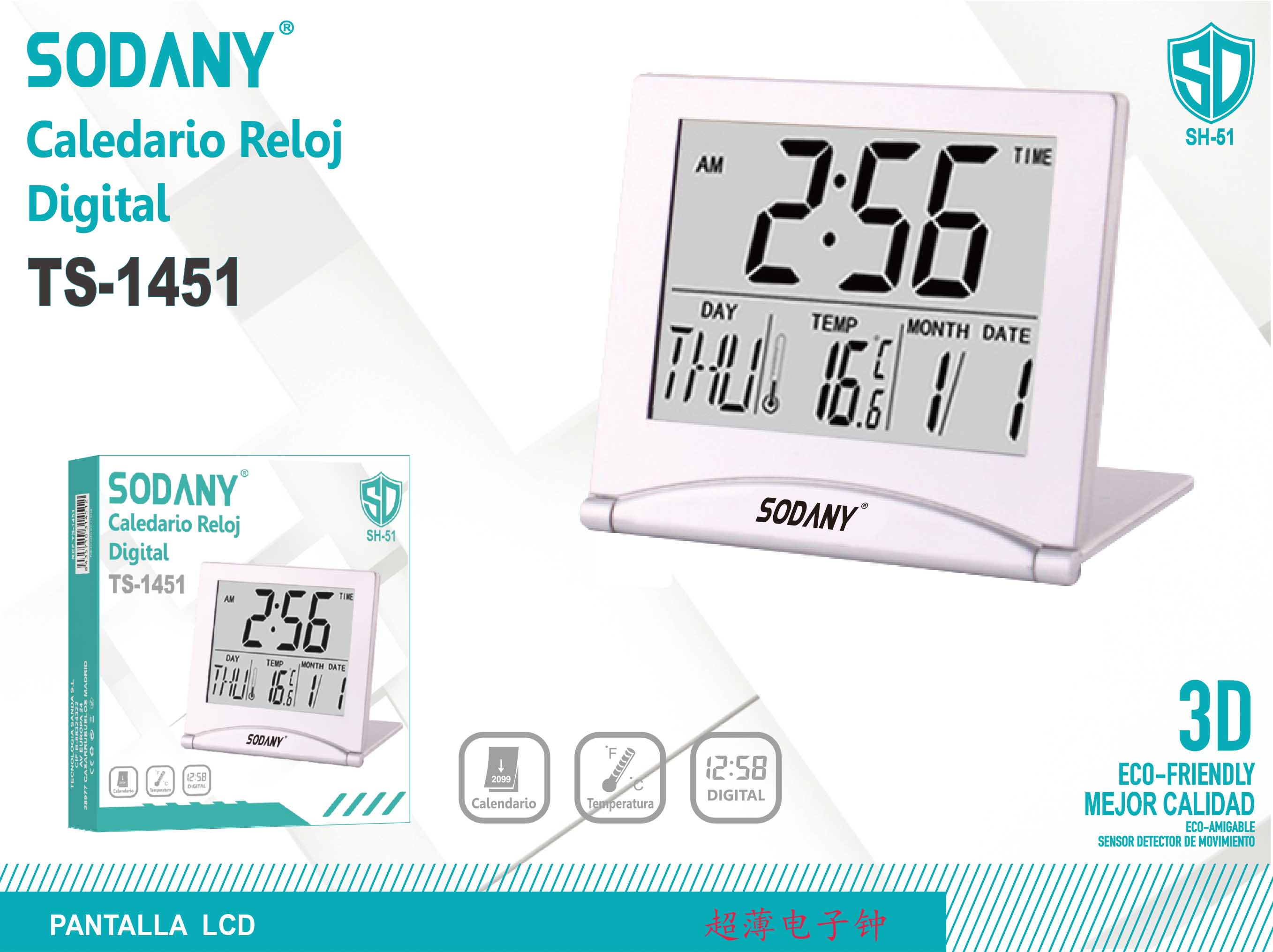 El Sodany TS-1451 es un calendario reloj digital moderno y funcional, ideal para oficinas, habitaciones, o cualquier espacio que requiera de una clara visualización del tiempo y la fecha. Su diseño incluye una pantalla LCD grande que facilita la lectura de la hora, fecha, y temperatura con solo una mirada.