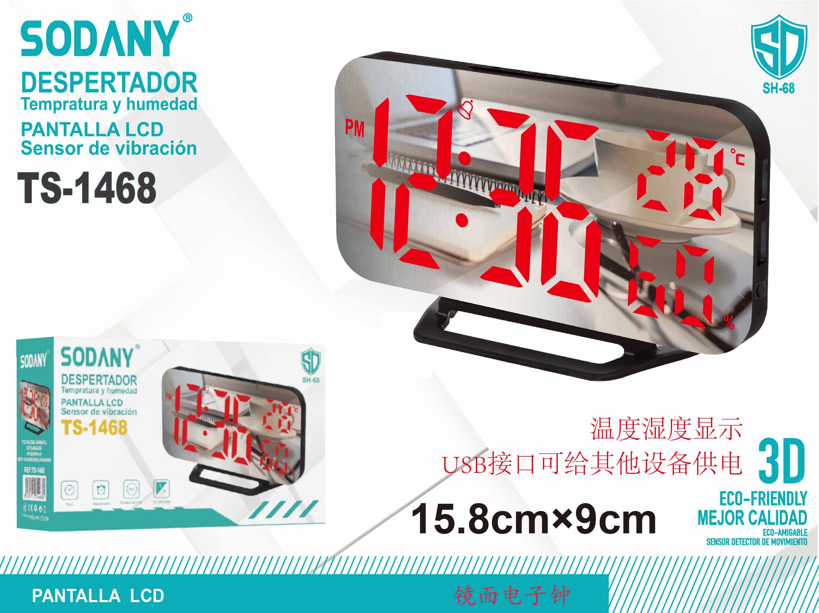 Despertador con Pantalla LCD, Sensor de Vibración y Puerto USB - Sodany TS-1468