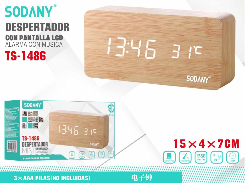 El Sodany TS-1486 es un despertador digital con un diseño elegante y minimalista, fabricado en madera clara. Este despertador es ideal para cualquier espacio que busque un toque de naturalidad combinado con tecnología moderna.