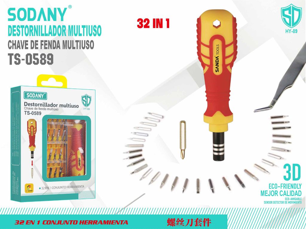El destornillador multiuso Sodany TS-0589 es un kit de herramientas esencial para cualquier hogar o taller. Este conjunto 32 en 1 ofrece una amplia variedad de puntas para adaptarse a múltiples tareas de reparación y mantenimiento, todo en un solo paquete compacto y fácil de usar.
