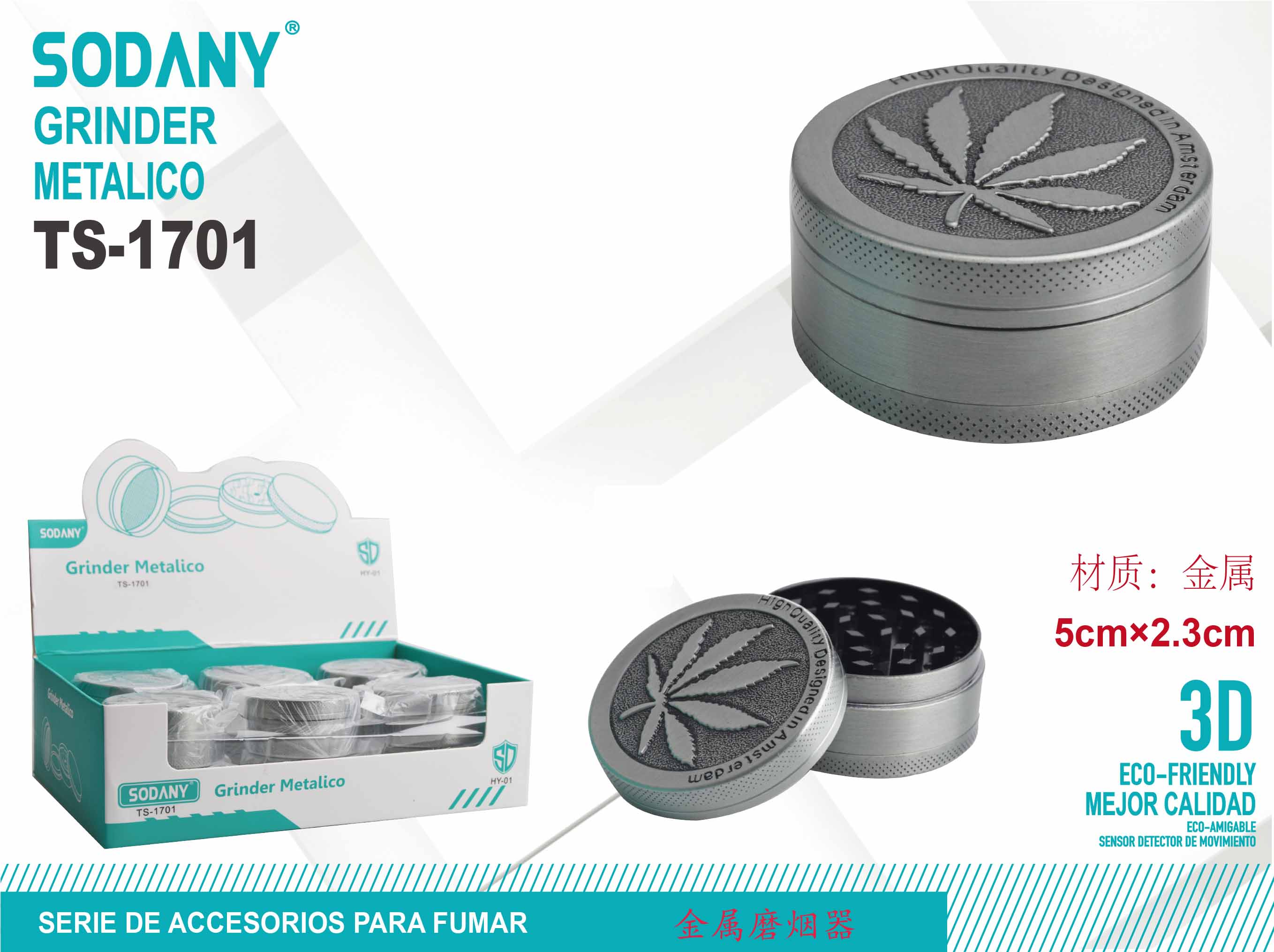 El Grinder Metálico Sodany TS-1701 es un accesorio esencial para quienes buscan un triturado eficiente y duradero. Fabricado en metal de alta calidad, este grinder está diseñado con un grabado de hoja de marihuana en su tapa, ofreciendo tanto estilo como funcionalidad. Su tamaño compacto lo hace fácil de transportar, ideal para llevarlo a cualquier lugar.