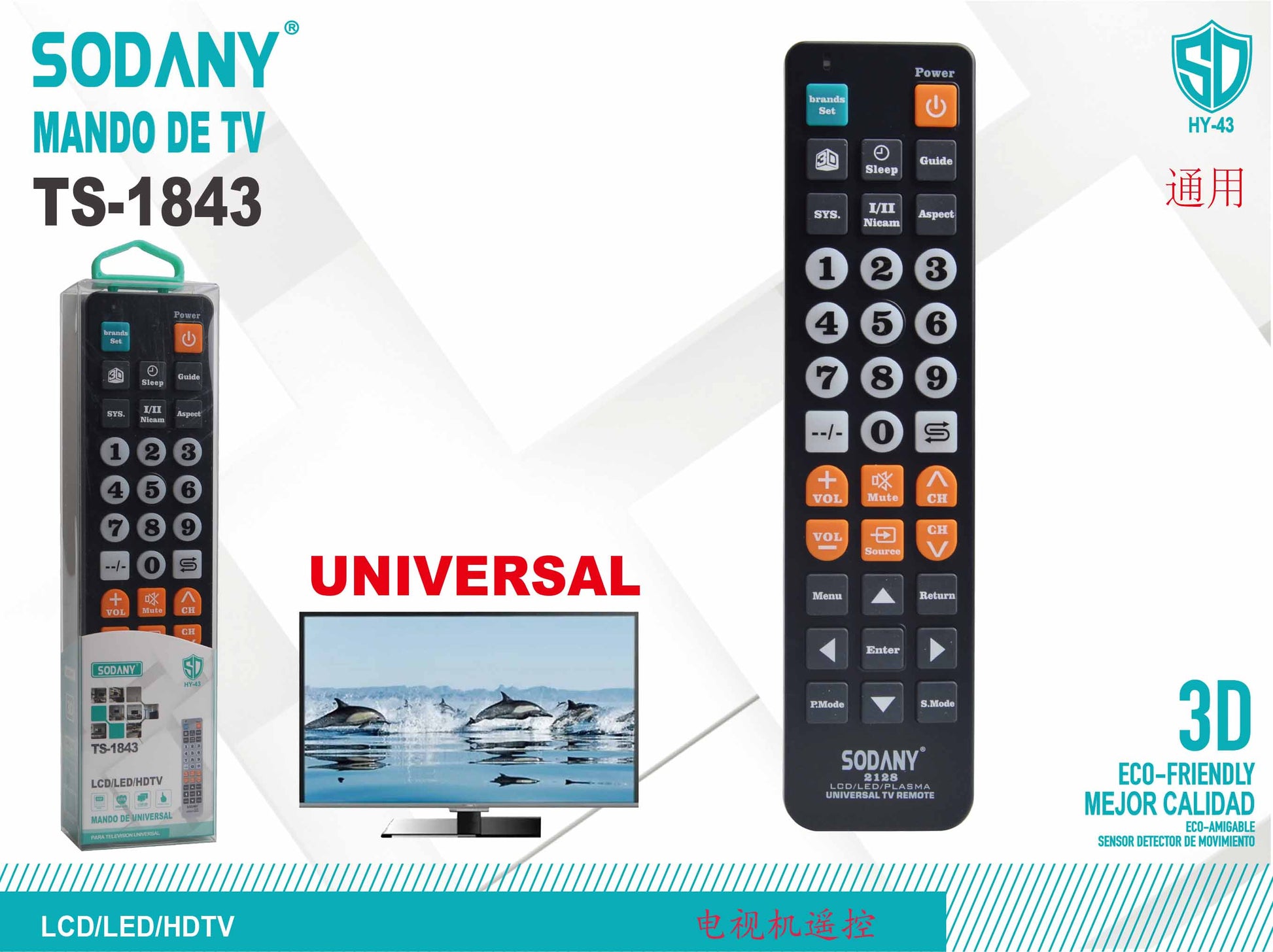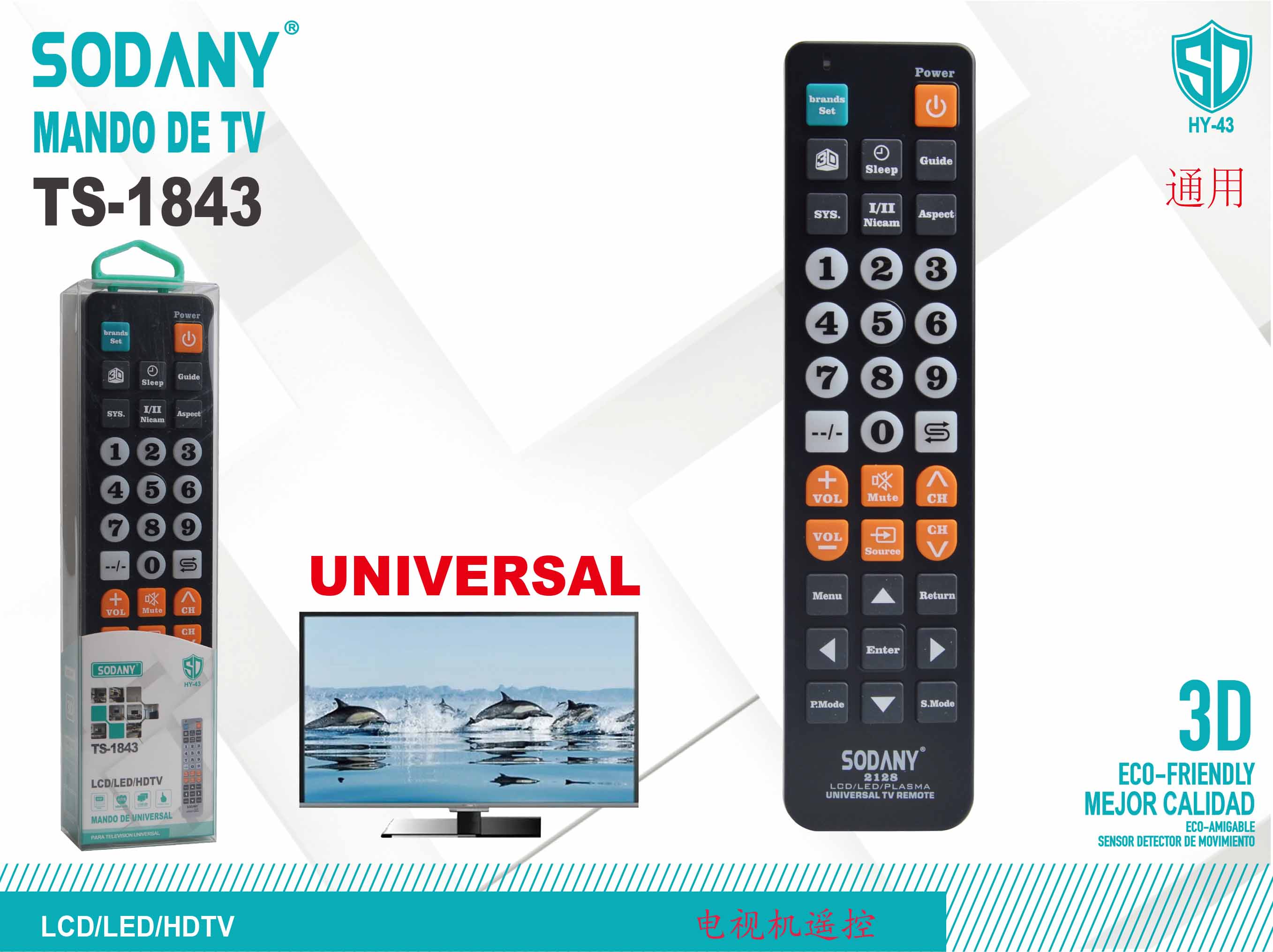El mando de TV universal Sodany TS-1843 está diseñado para proporcionar una solución completa y fácil de usar para controlar una amplia variedad de televisores. Este mando es compatible con televisores LCD, LED y HDTV, ofreciendo una funcionalidad avanzada y un diseño moderno.