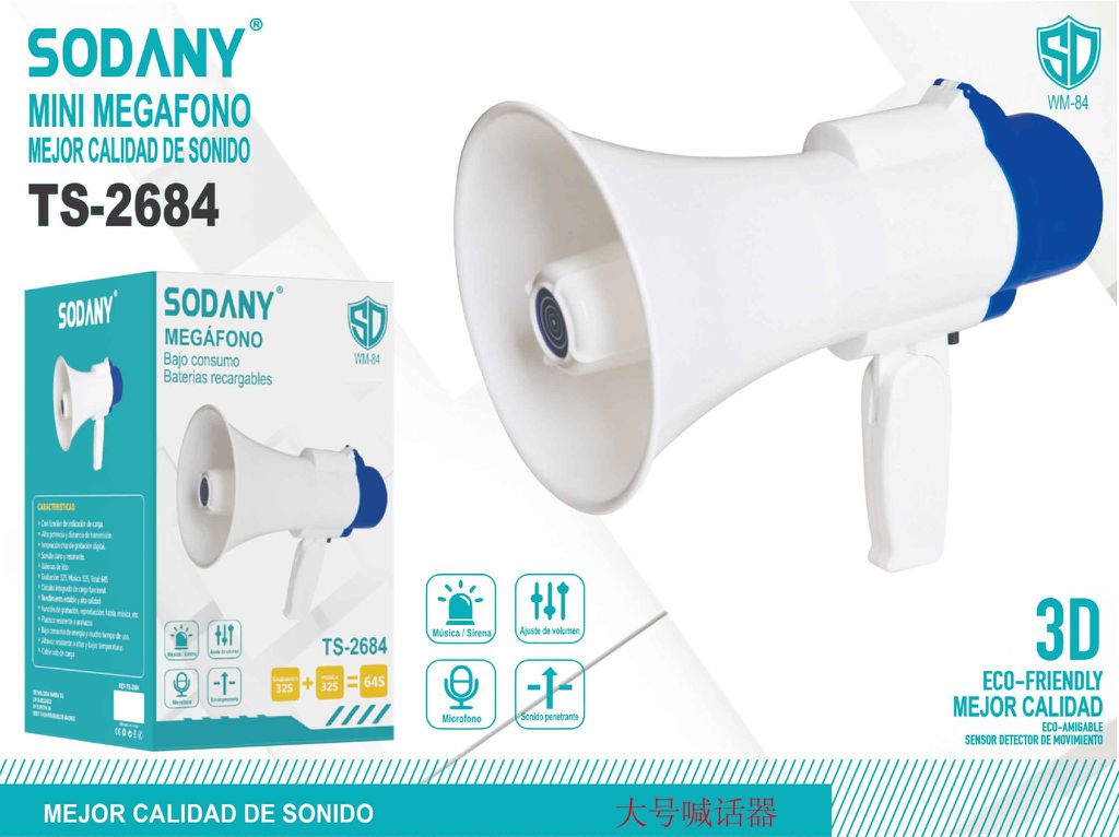 El Sodany TS-2684 es un megáfono diseñado para ofrecer una excelente calidad de sonido, ideal para actividades al aire libre, eventos, y situaciones que requieren una comunicación clara a larga distancia. Su diseño ergonómico y su capacidad de amplificación lo convierten en una herramienta esencial para dirigir grandes grupos de personas.