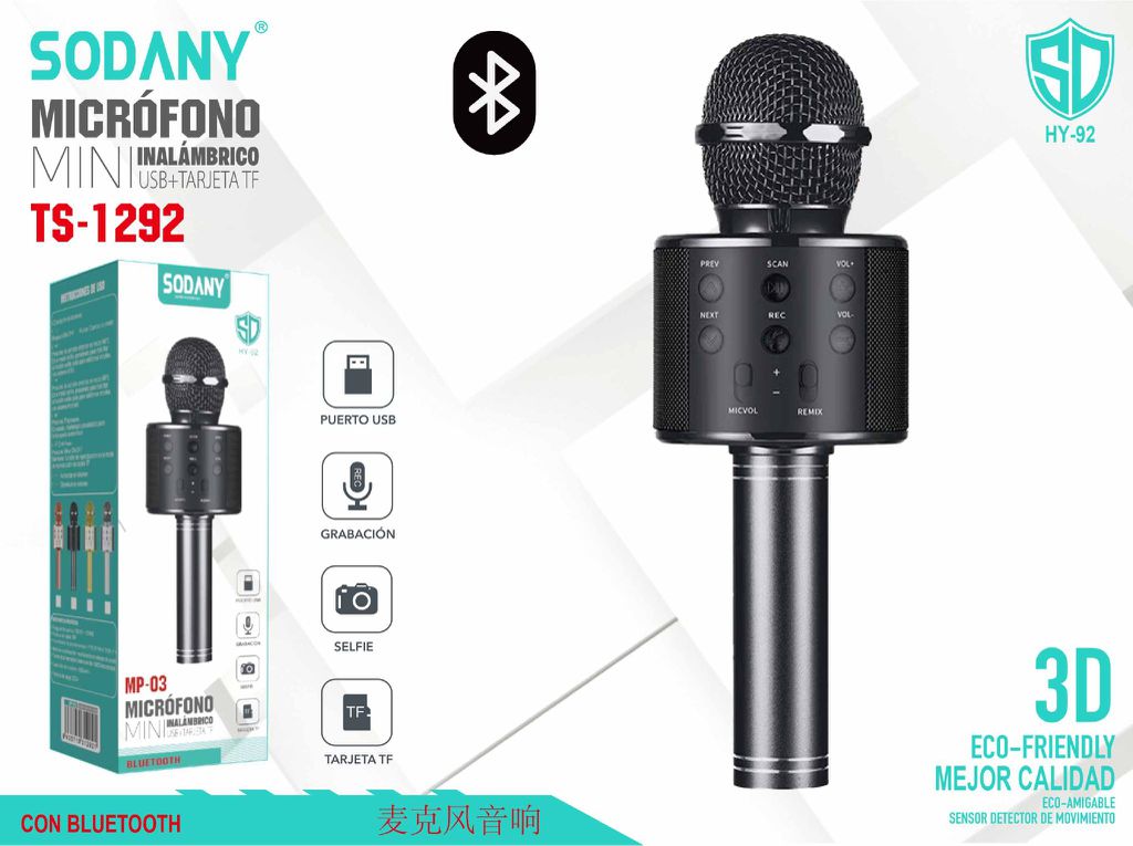 El Sodany TS-1292 es un micrófono inalámbrico con un acabado en color negro, diseñado para quienes disfrutan del karaoke y otras actividades de entretenimiento. Este dispositivo ofrece la combinación perfecta de micrófono y altavoz portátil, con conectividad Bluetooth y varias funciones adicionales que lo hacen ideal para uso personal y eventos.