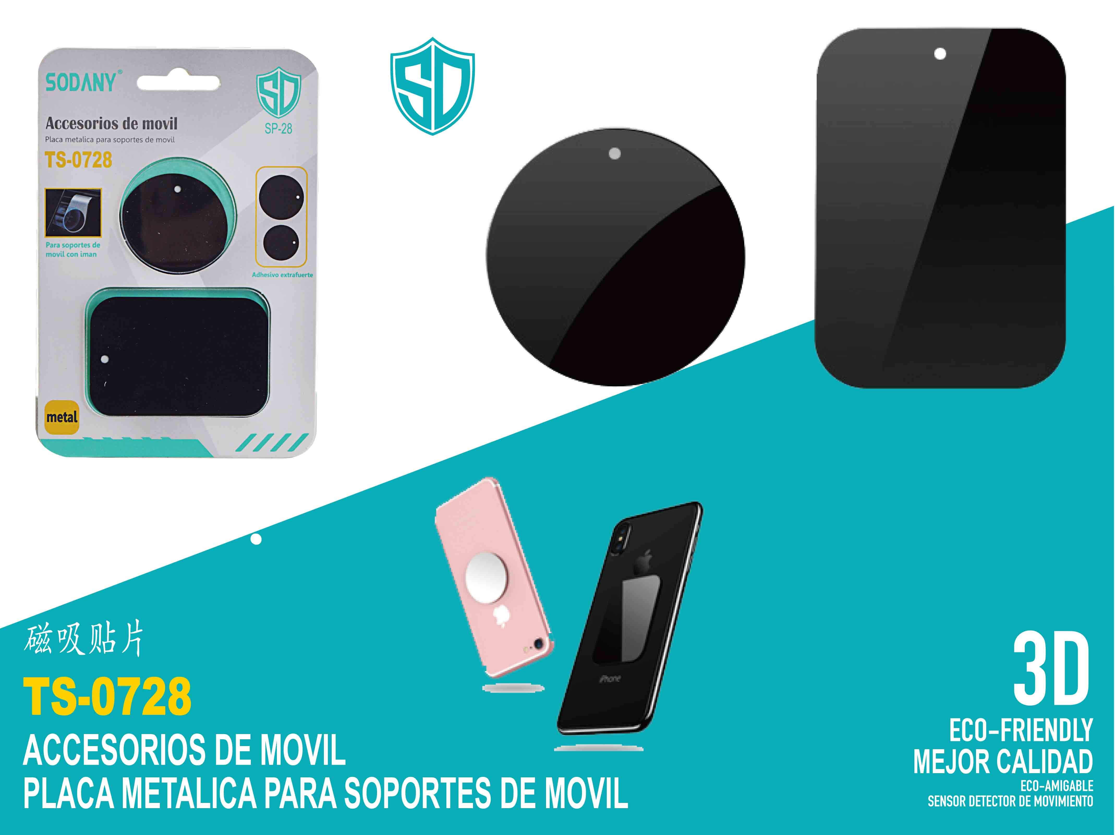 La Placa Metálica para Soportes de Móvil Sodany TS-0728 es un accesorio indispensable para aquellos que utilizan soportes magnéticos en su coche. Esta placa metálica se adhiere a la parte trasera de tu dispositivo móvil, permitiendo una sujeción firme y segura en cualquier soporte magnético.