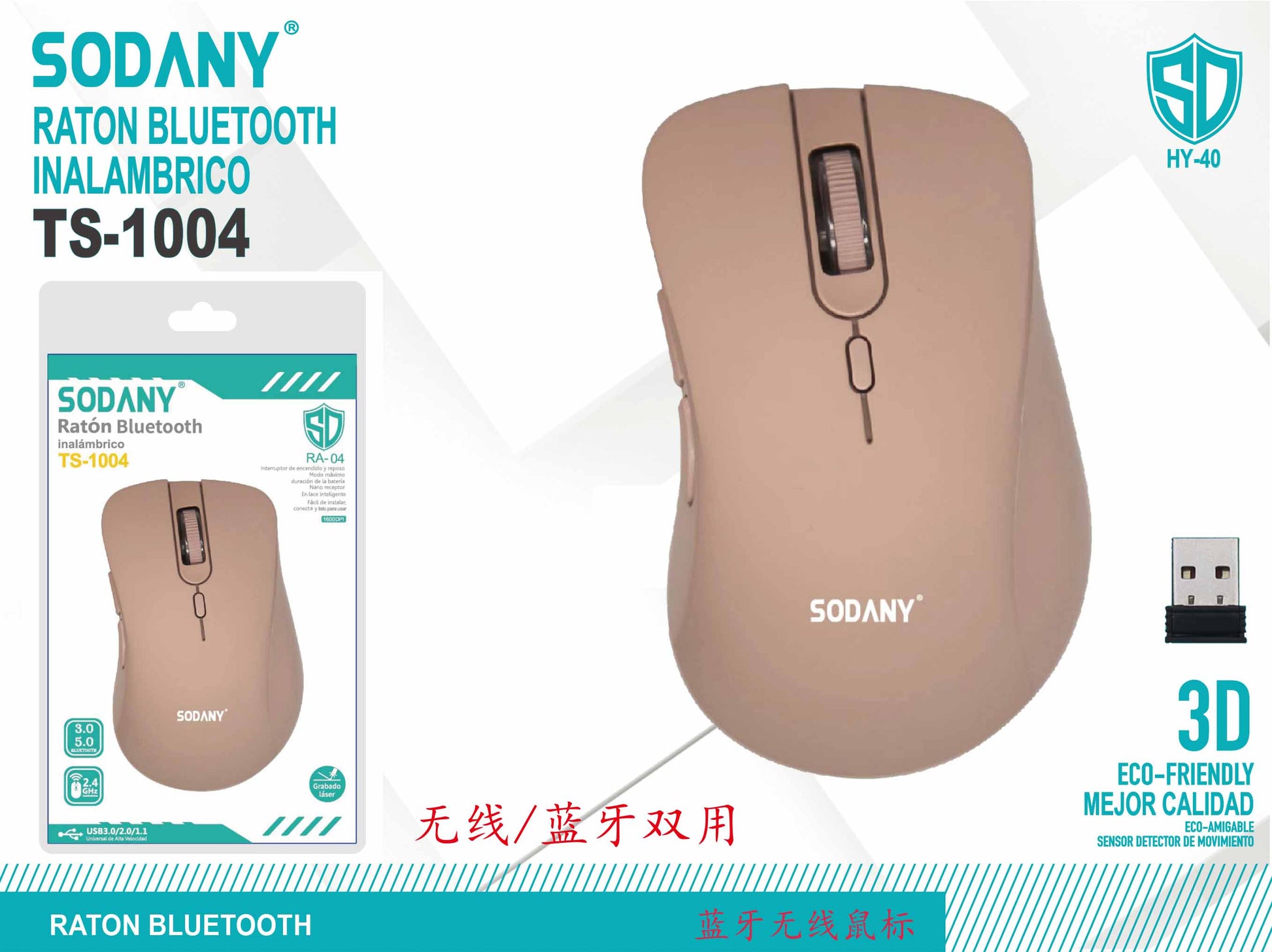 El Ratón Bluetooth Sodany TS-1004 está diseñado para proporcionar una experiencia de uso cómoda y eficiente. Con un diseño elegante en color beige, este ratón es ideal para usuarios que buscan estilo y funcionalidad en sus accesorios de trabajo o entretenimiento.