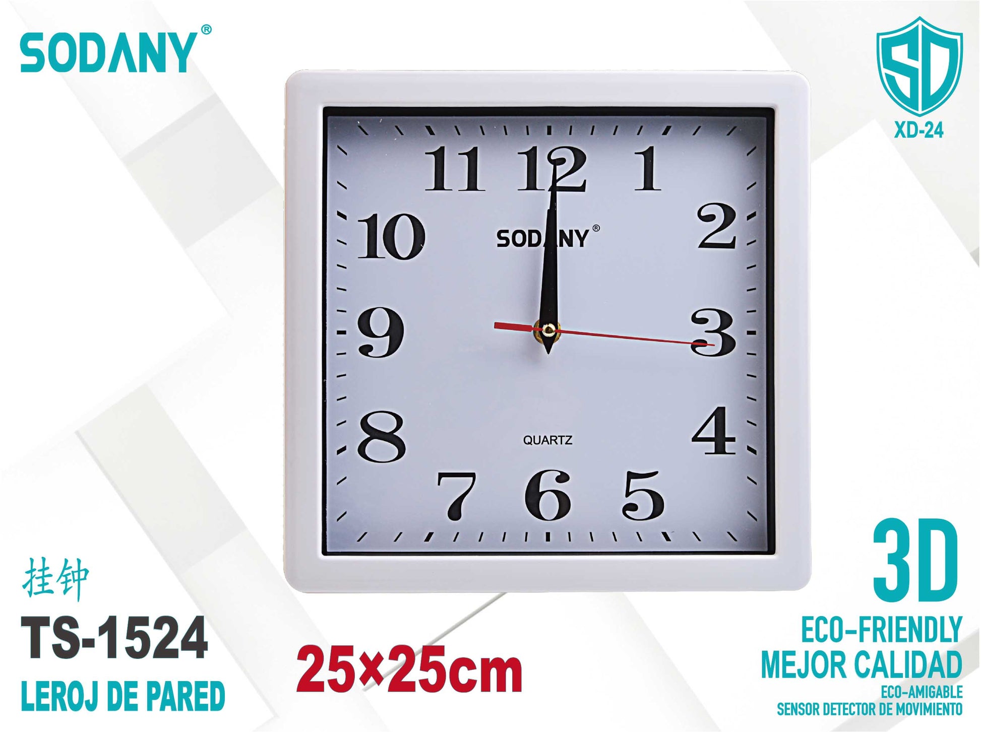 Reloj de Pared Cuadrado 25x25cm en Color Blanco - Sodany TS-1524