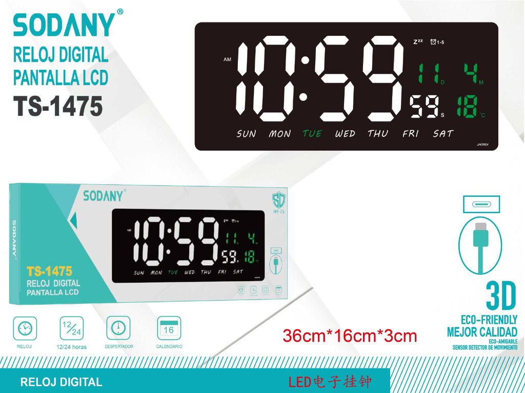 El reloj digital Sodany TS-1475 es una excelente opción para aquellos que buscan un dispositivo funcional y moderno para su hogar u oficina. Con una gran pantalla LCD, este reloj ofrece una lectura clara y precisa de la hora, así como información adicional relevante.