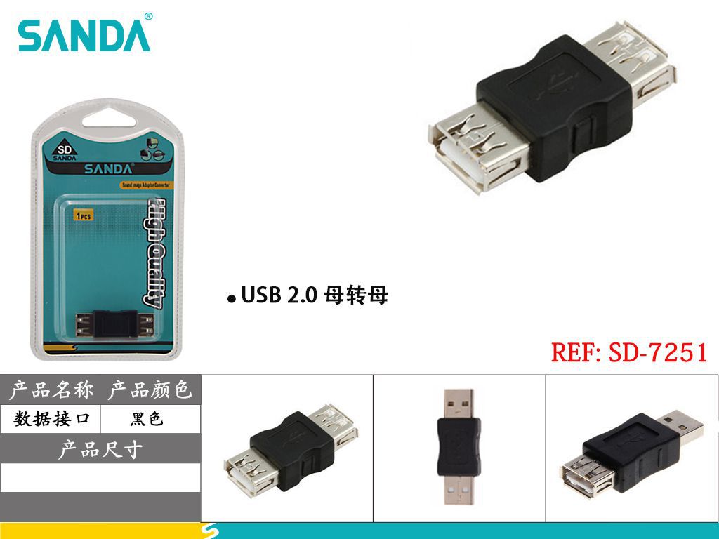 SANDA Adaptador USB Hembra a Hembra SD-7251