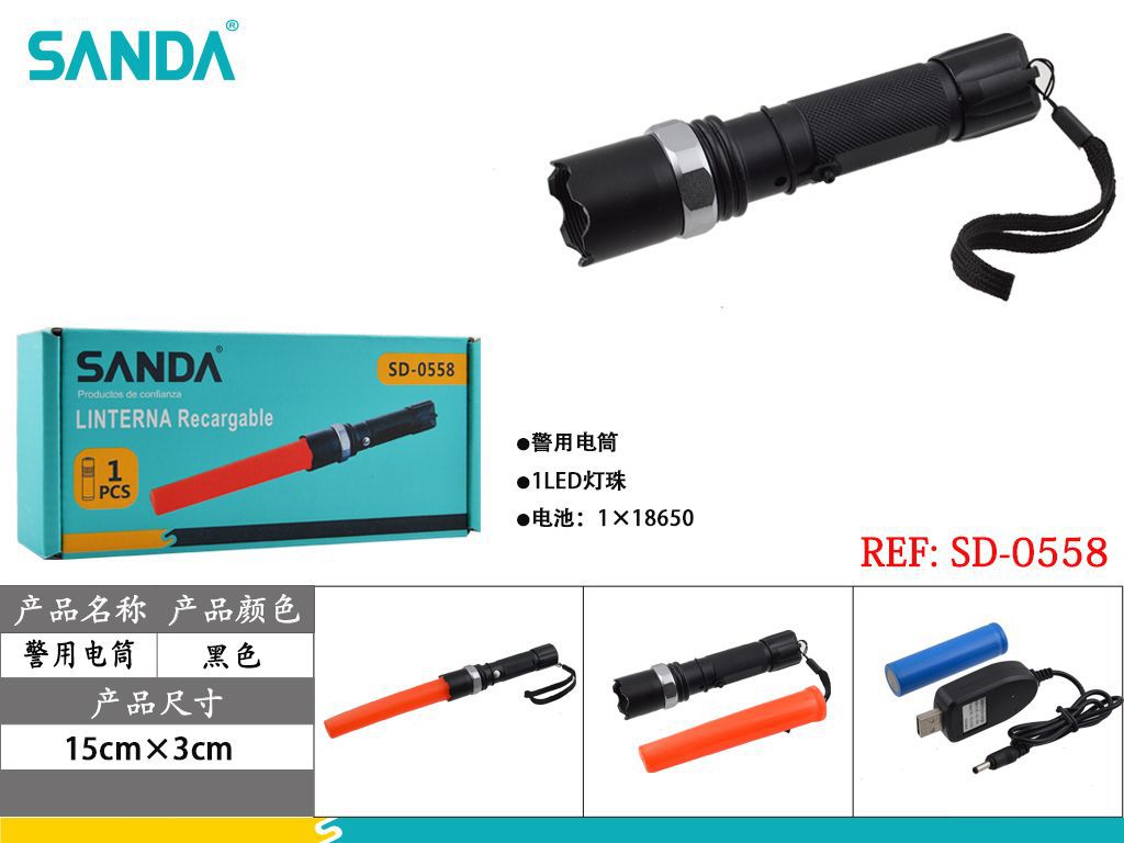 La linterna recargable SANDA SD-0558 está diseñada especialmente para ser utilizada en situaciones de emergencia o para señalización. Equipada con un potente LED y un bastón de señalización desmontable, esta linterna es ideal para personal de seguridad, policías o cualquier persona que necesite una herramienta de iluminación eficiente y visible. Viene con una batería recargable de tipo 18650 y un cargador incluido, asegurando un uso prolongado y práctico.