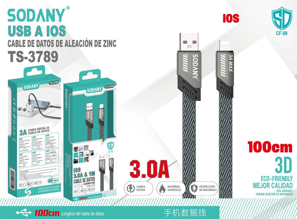 El cable de datos SODANY TS-3789 es la opción perfecta para cargar y transferir datos de manera eficiente en dispositivos iOS. Con un diseño robusto y materiales de alta calidad como la aleación de zinc y el nylon trenzado, este cable asegura una larga durabilidad y resistencia. Además, su capacidad de carga rápida de 3.0A optimiza el tiempo de carga y garantiza la seguridad de tus dispositivos.
