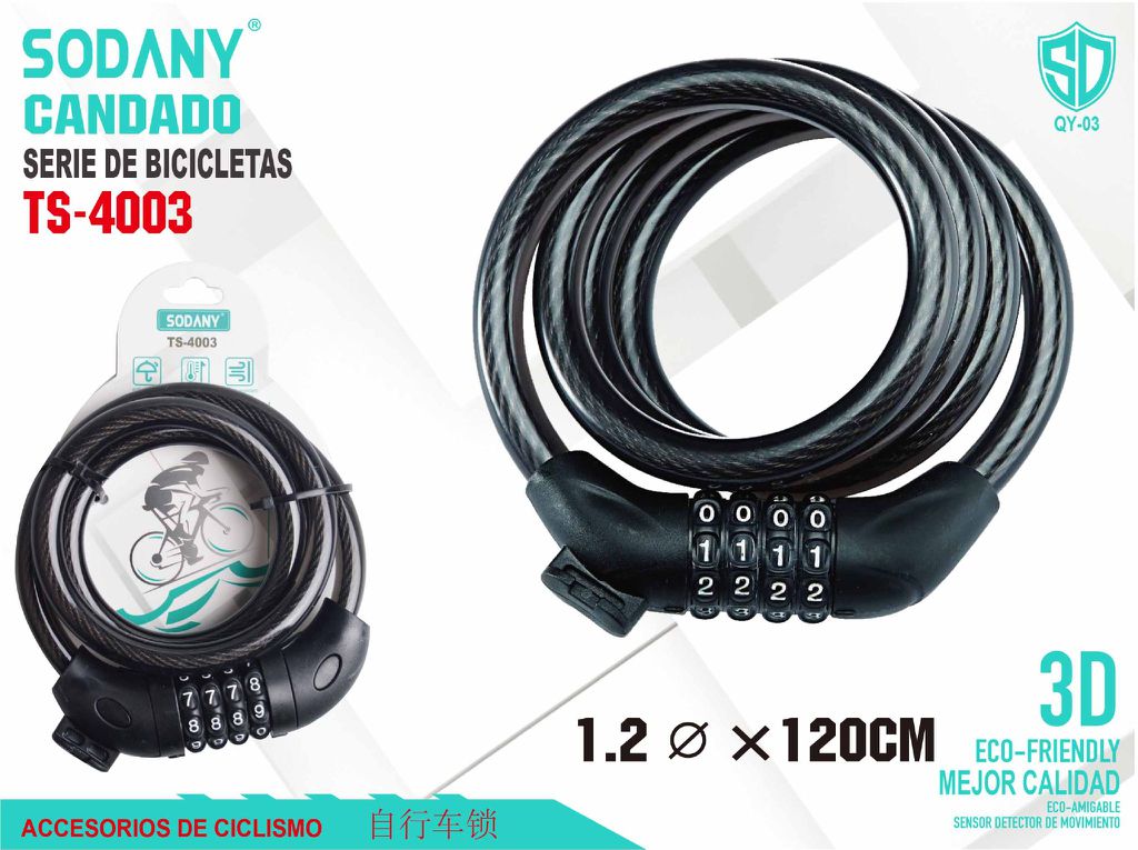 SODANY Candado de Bicicleta TS-4003