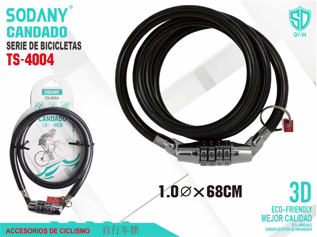 El candado de combinación SODANY TS-4004 es ideal para mantener tu bicicleta segura. Con un cable de acero de 1.0 cm de grosor y 68 cm de longitud, proporciona seguridad adicional contra robos. Este candado de bicicleta cuenta con un sistema de combinación de 4 dígitos, eliminando la necesidad de llaves y proporcionando mayor comodidad.