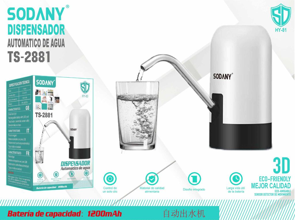 El dispensador automático de agua SODANY TS-2881 es una solución práctica y eficiente para dispensar agua de garrafas y botellas grandes con facilidad. Equipado con una batería recargable de 1200mAh y un diseño moderno y compacto, este dispensador es perfecto para el hogar, la oficina o actividades al aire libre. Su funcionamiento automático con un solo toque y su boquilla de acero inoxidable permiten una extracción rápida y limpia del agua, facilitando el acceso al agua potable de forma conveniente y sin derrames.