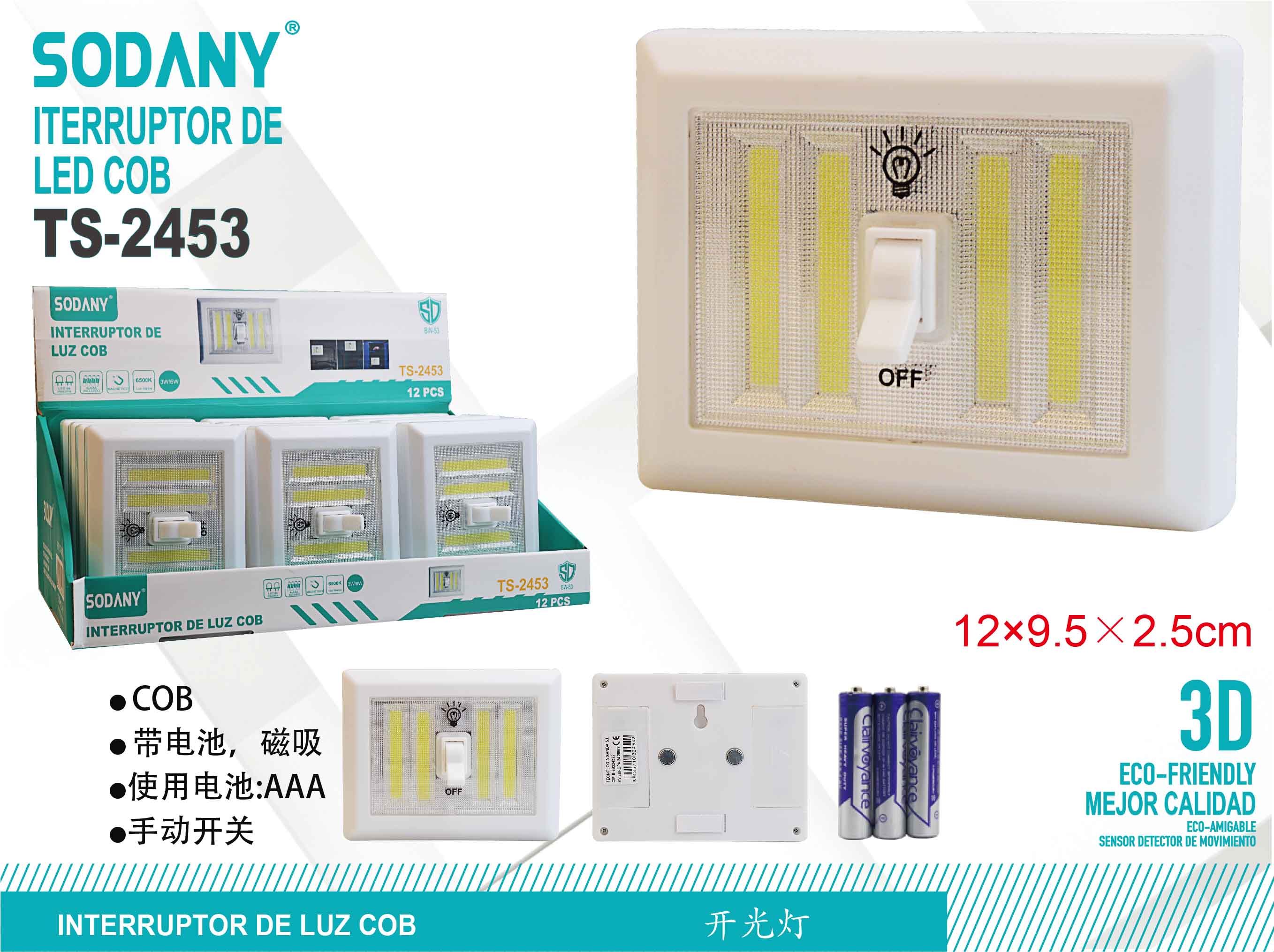 El SODANY Interruptor de LED COB TS-2453 es una solución eficiente para iluminar cualquier espacio con tecnología COB de alto brillo. Diseñado con un interruptor manual y un diseño compacto, esta lámpara es ideal para instalar en armarios, pasillos, o áreas donde se necesita una iluminación adicional sin la necesidad de instalación eléctrica complicada. Incluye imanes para facilitar su fijación a superficies metálicas.